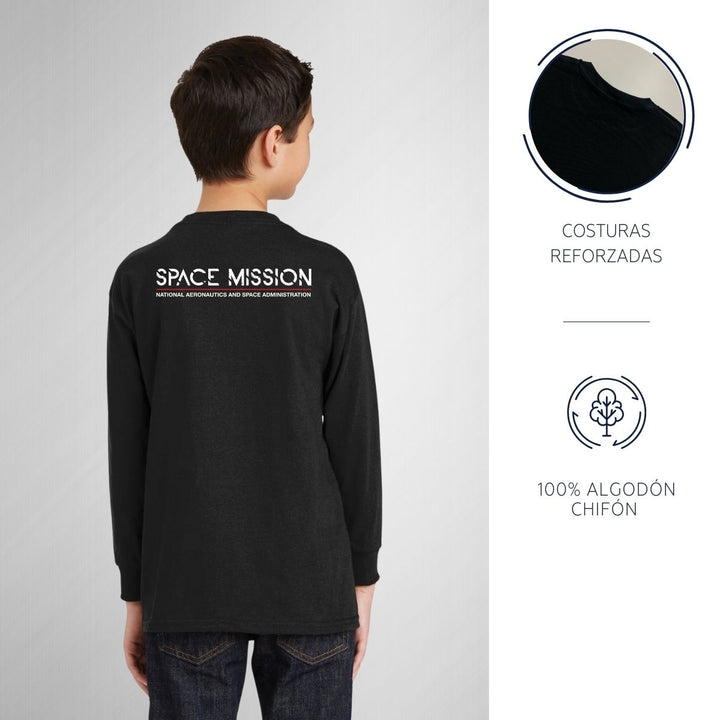 Playera infantil manga larga, cuello redondo para niño o niña nueva, diseño original impreso con tecnología DTG (directo a la prenda) tacto cero, uso casual o deportiva, 100% algodón, estructura tubular sin costuras laterales. Colores de camiseta: Negro, Blanco.
