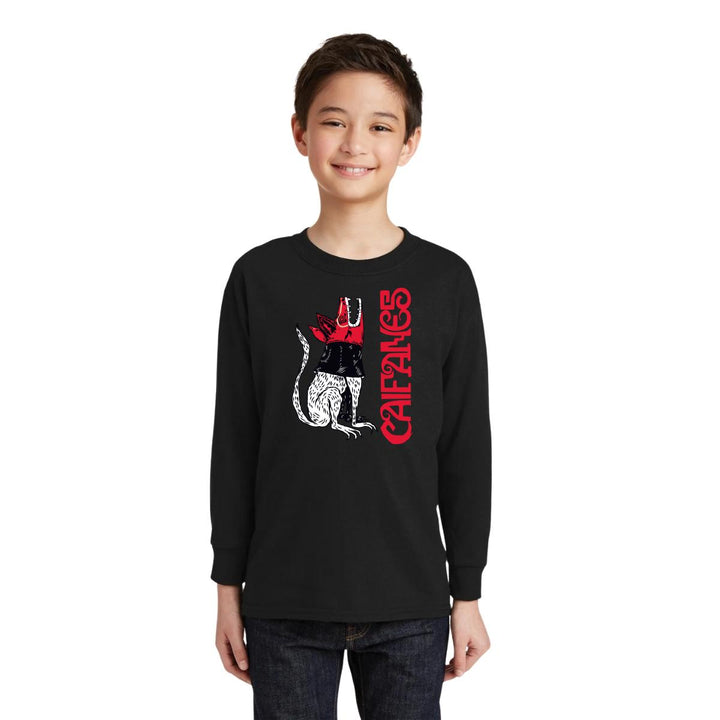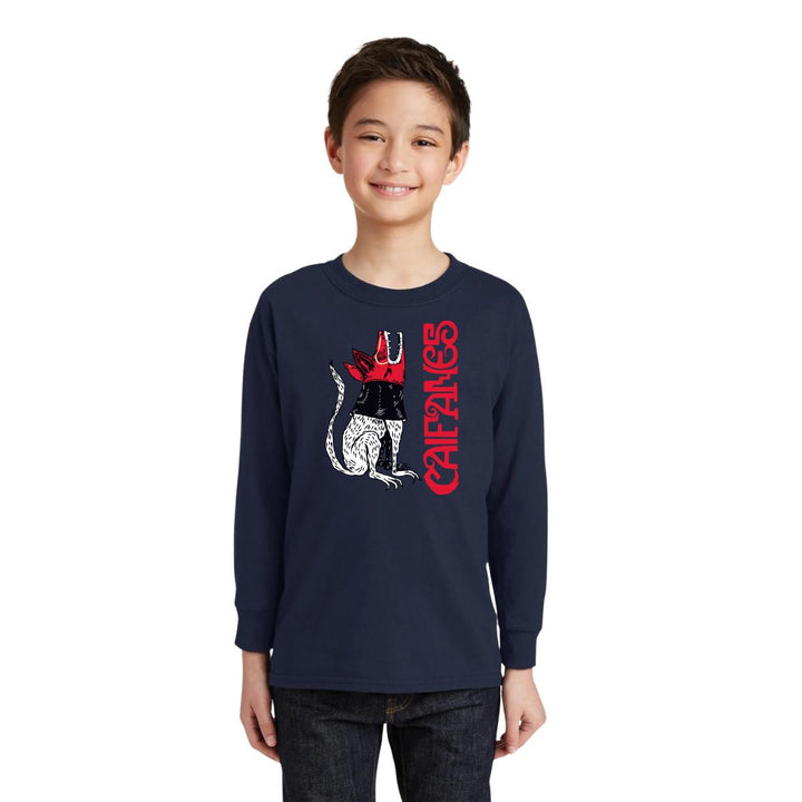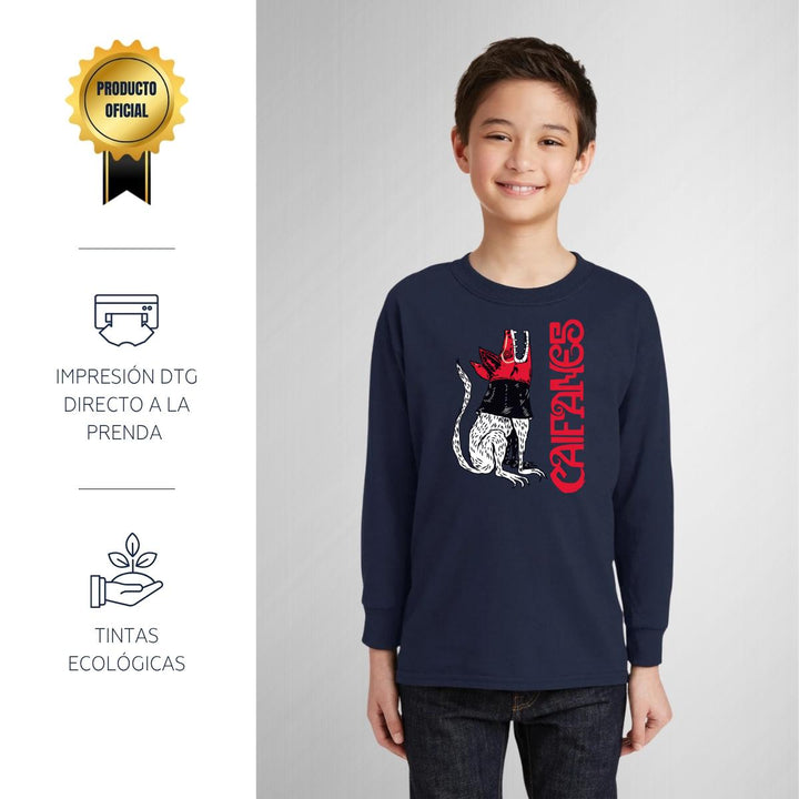 Playera infantil manga larga, cuello redondo para niño o niña nueva, diseño original impreso con tecnología DTG (directo a la prenda) tacto cero, uso casual o deportiva, 100% algodón, estructura tubular sin costuras laterales. Colores de camiseta: Negro, Blanco, Azul Marino.