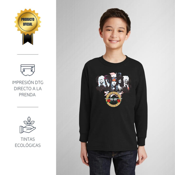 Playera Manga Larga Niños Rock Guns N' Roses Grupo Logo 0890