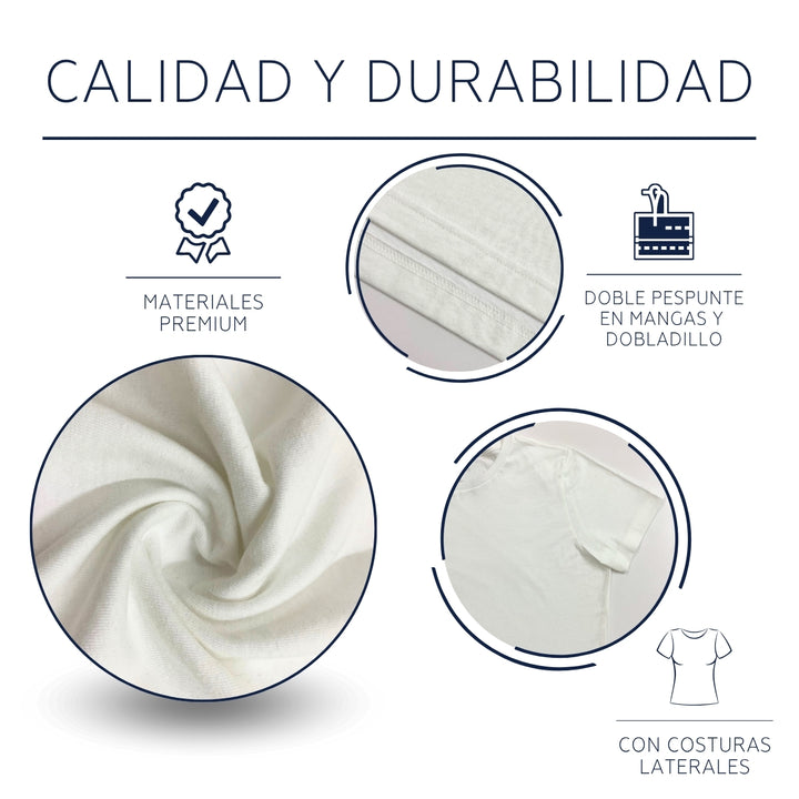 - ORIGINALIDAD Y SOSTENIBILIDAD: Playera de Mujer manga corta, Producto con un diseño original impreso con tecnología DTG (directo a la prenda) tacto cero. Se utilizan tintas ecológicas sin contaminantes que se adhieren a las fibras de la ropa, garantizando calidad, colores vivos e imagen de larga duración en la camiseta sin comprometer el planeta.