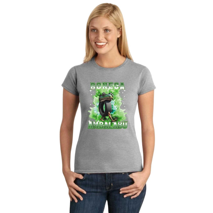 Playera de adulto manga corta, cuello redondo para mujer nueva, diseño Brainrot Boneca Ambalabu original impreso con tecnología DTG (directo a la prenda) tacto cero, uso casual o deportiva, 100% algodón peinado, ajuste semi entallado con costuras laterales. Colores de camiseta para dama: Negro, Blanco, Azul Marino, Gris.