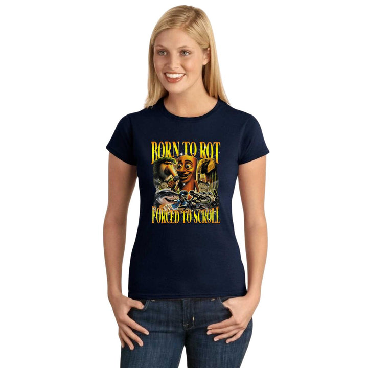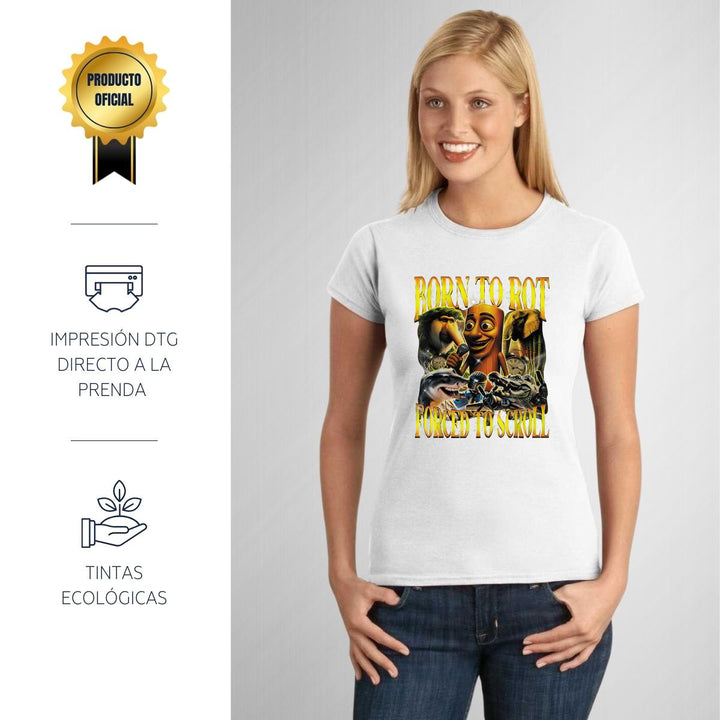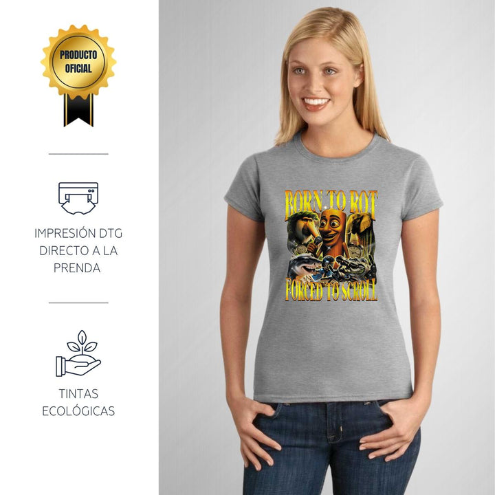 Playera de adulto manga corta, cuello redondo para mujer nueva, diseño Brainrot Italianos original impreso con tecnología DTG (directo a la prenda) tacto cero, uso casual o deportiva, 100% algodón peinado, ajuste semi entallado con costuras laterales. Colores de camiseta para dama: Negro, Blanco, Azul Marino, Gris.