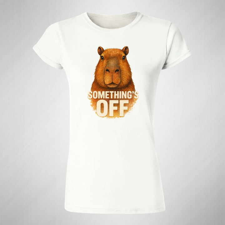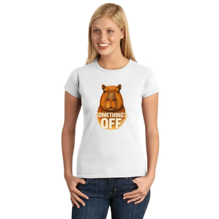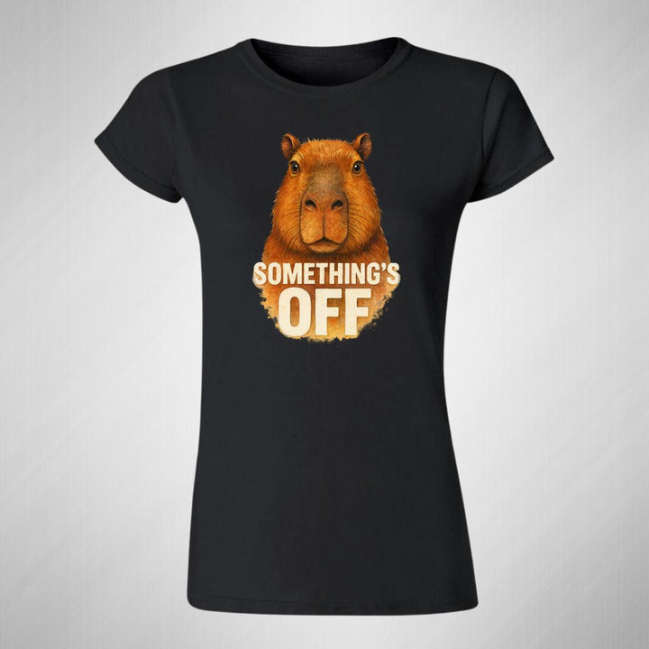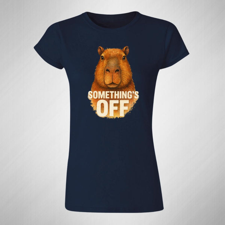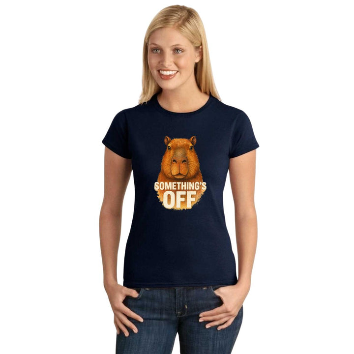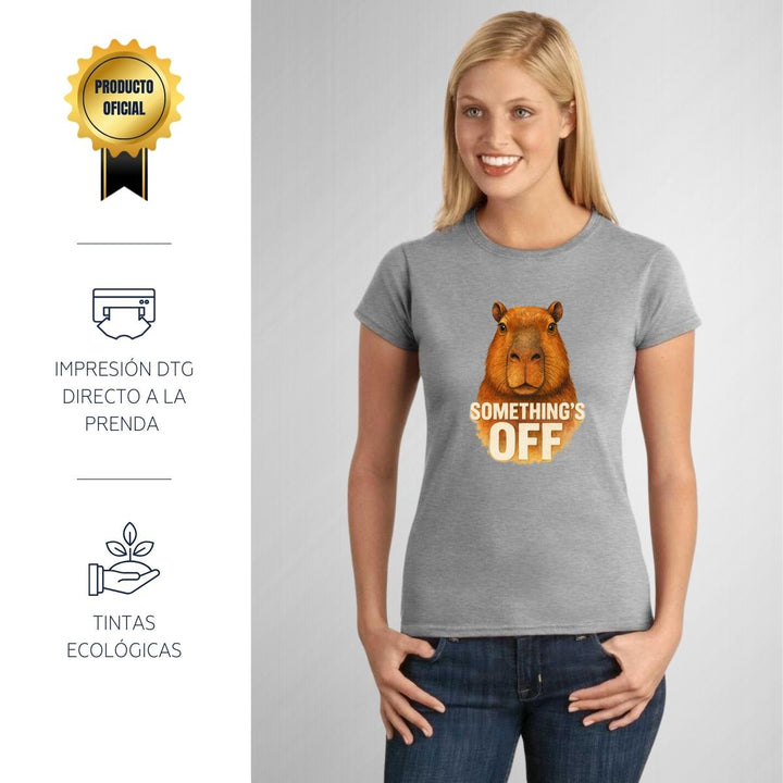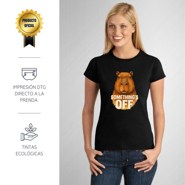 Playera de adulto manga corta, cuello redondo para mujer nueva, diseño Capibara Carpincho Frases original impreso con tecnología DTG (directo a la prenda) tacto cero, uso casual o deportiva, 100% algodón peinado, ajuste semi entallado con costuras laterales. Colores de camiseta para dama: Negro, Blanco, Azul Marino, Gris.
