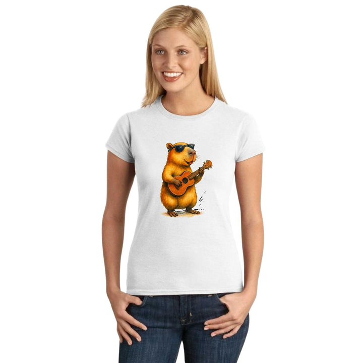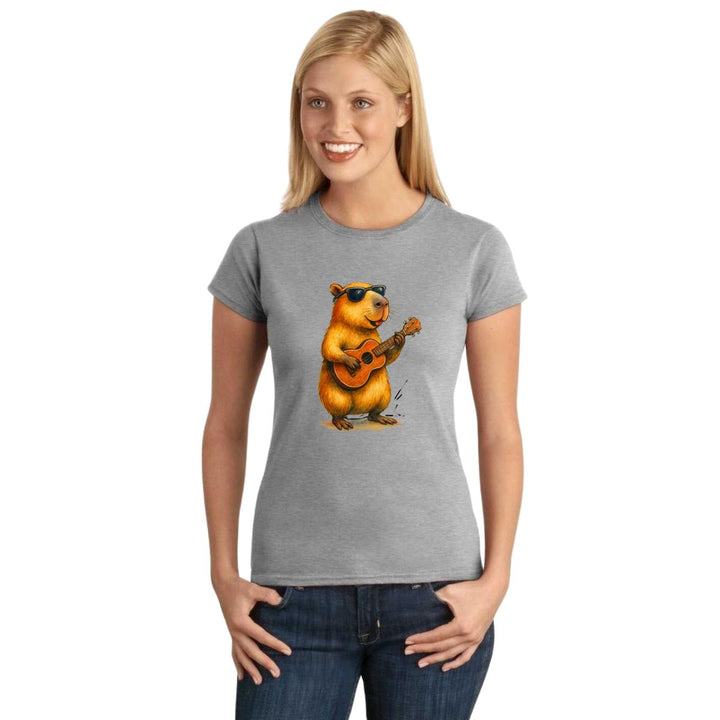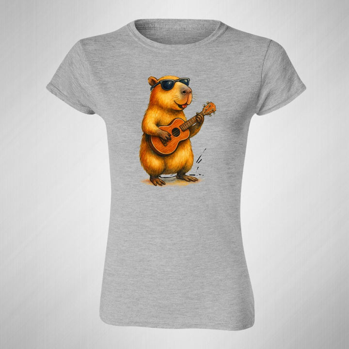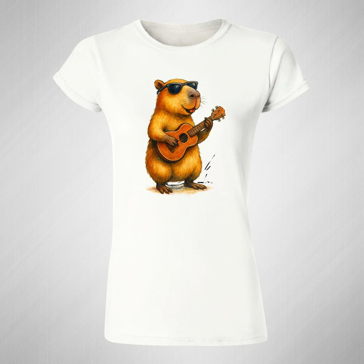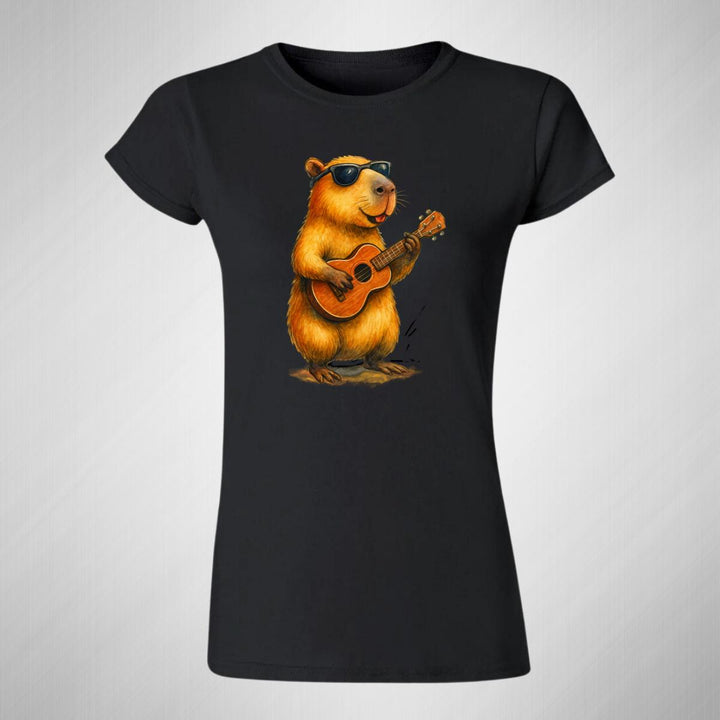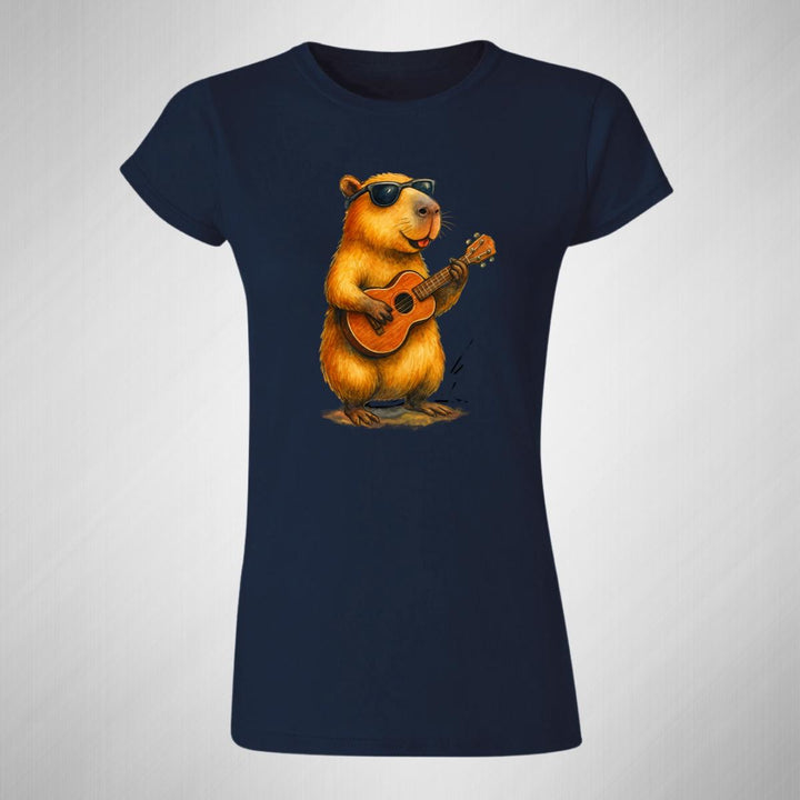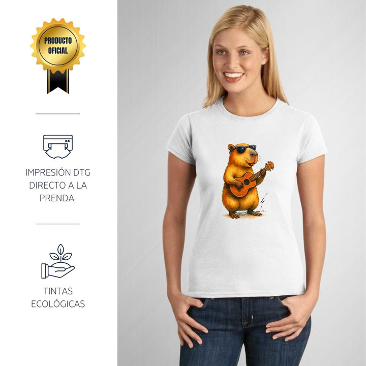 Playera de adulto manga corta, cuello redondo para mujer nueva, diseño Capibara Carpincho Frases original impreso con tecnología DTG (directo a la prenda) tacto cero, uso casual o deportiva, 100% algodón peinado, ajuste semi entallado con costuras laterales. Colores de camiseta para dama: Negro, Blanco, Azul Marino, Gris.