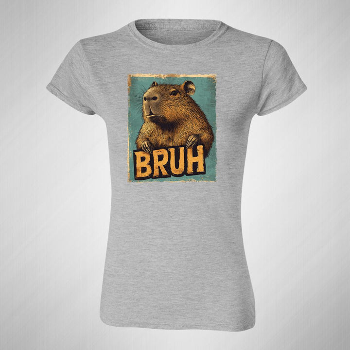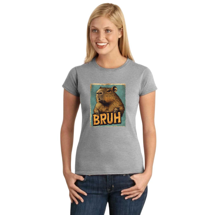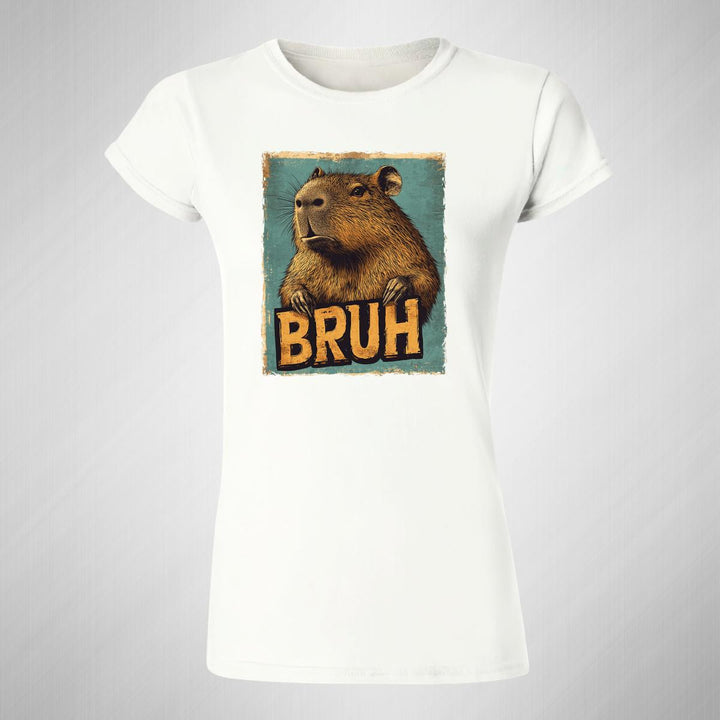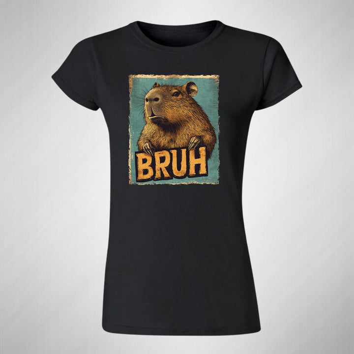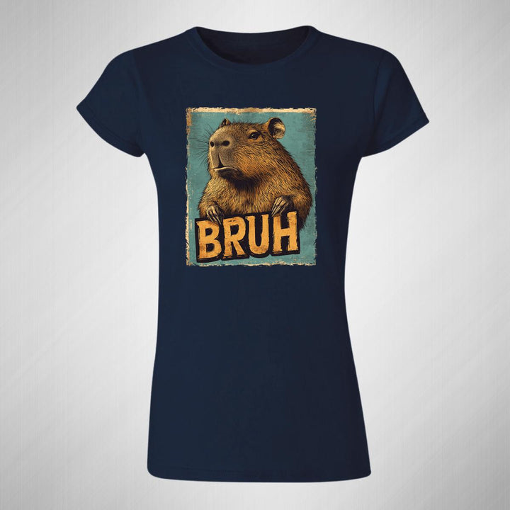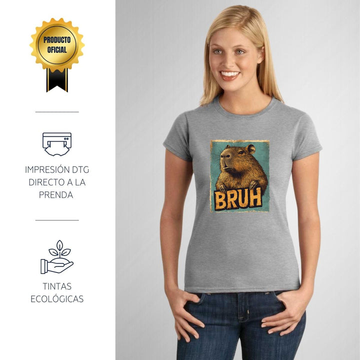 Playera de adulto manga corta, cuello redondo para mujer nueva, diseño Capibara Carpincho Frases original impreso con tecnología DTG (directo a la prenda) tacto cero, uso casual o deportiva, 100% algodón peinado, ajuste semi entallado con costuras laterales. Colores de camiseta para dama: Negro, Blanco, Azul Marino, Gris.