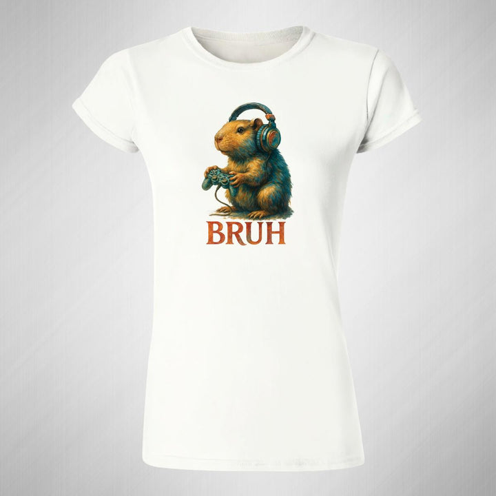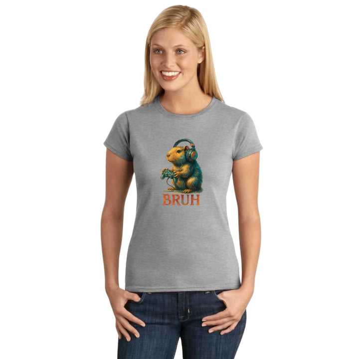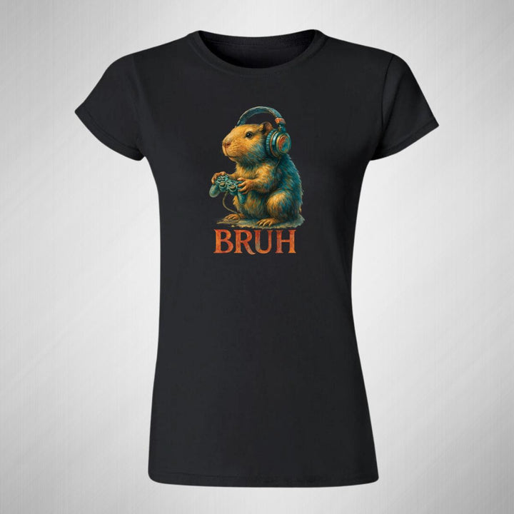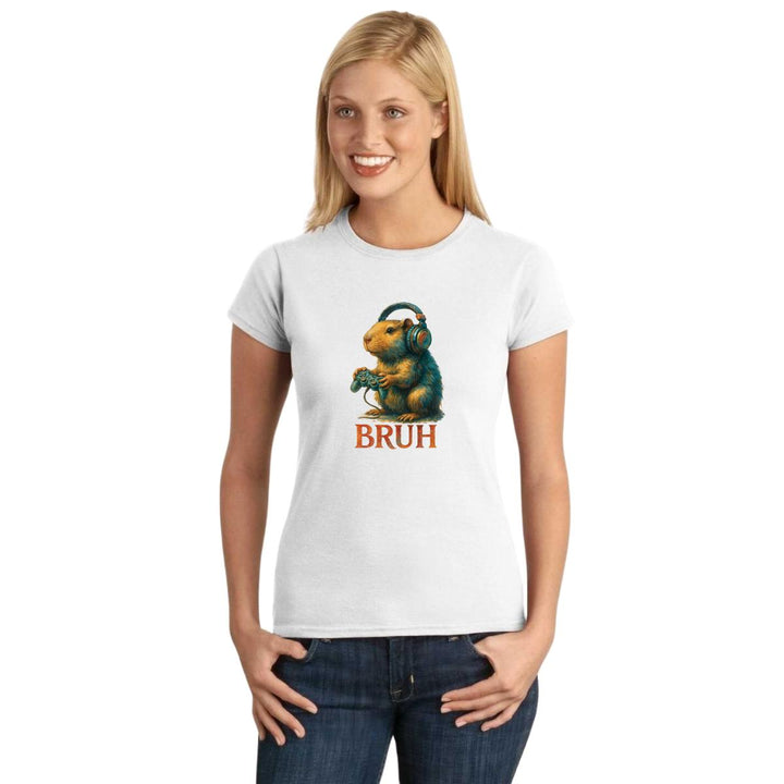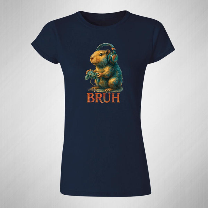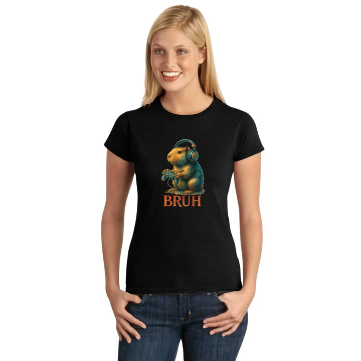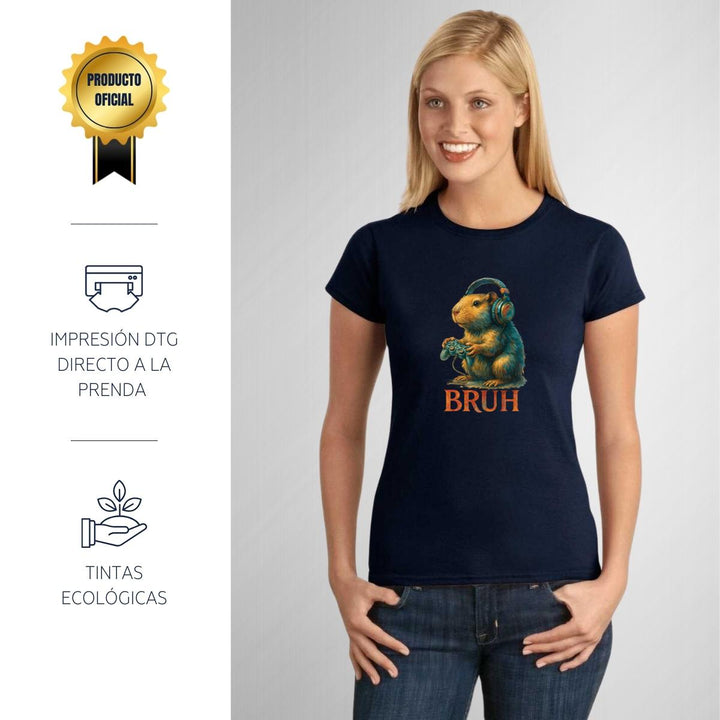 Playera de adulto manga corta, cuello redondo para mujer nueva, diseño Capibara Carpincho Frases original impreso con tecnología DTG (directo a la prenda) tacto cero, uso casual o deportiva, 100% algodón peinado, ajuste semi entallado con costuras laterales. Colores de camiseta para dama: Negro, Blanco, Azul Marino, Gris.