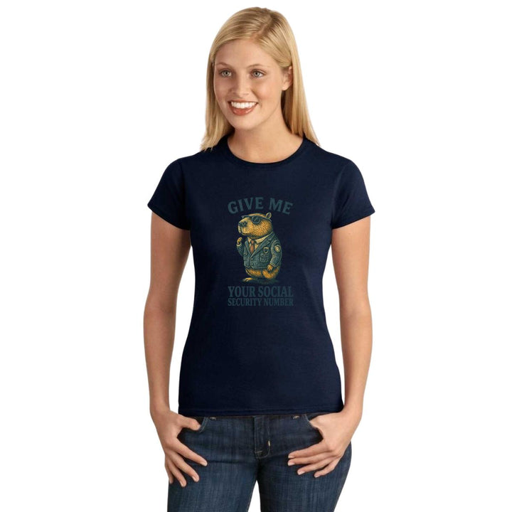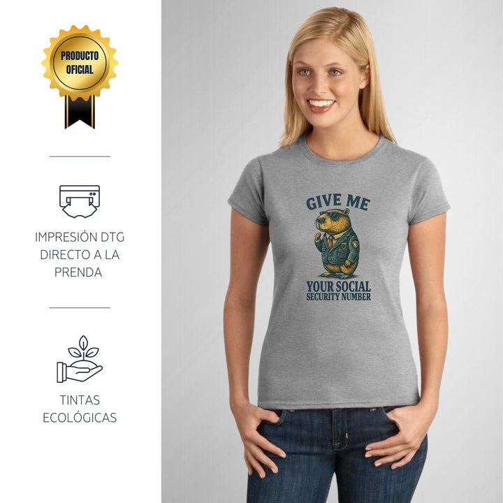 Playera de adulto manga corta, cuello redondo para mujer nueva, diseño Capibara Carpincho Frases original impreso con tecnología DTG (directo a la prenda) tacto cero, uso casual o deportiva, 100% algodón peinado, ajuste semi entallado con costuras laterales. Colores de camiseta para dama: Negro, Blanco, Azul Marino, Gris.