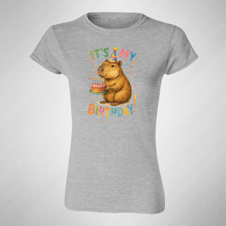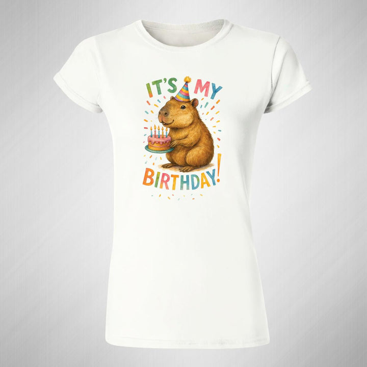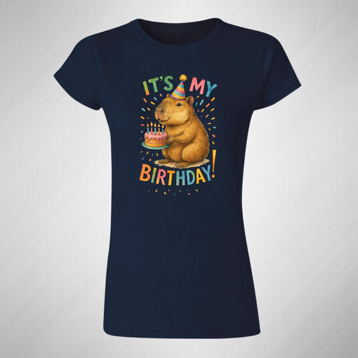 Playera de adulto manga corta, cuello redondo para mujer nueva, diseño Capibara Carpincho Frases original impreso con tecnología DTG (directo a la prenda) tacto cero, uso casual o deportiva, 100% algodón peinado, ajuste semi entallado con costuras laterales. Colores de camiseta para dama: Negro, Blanco, Azul Marino, Gris.
