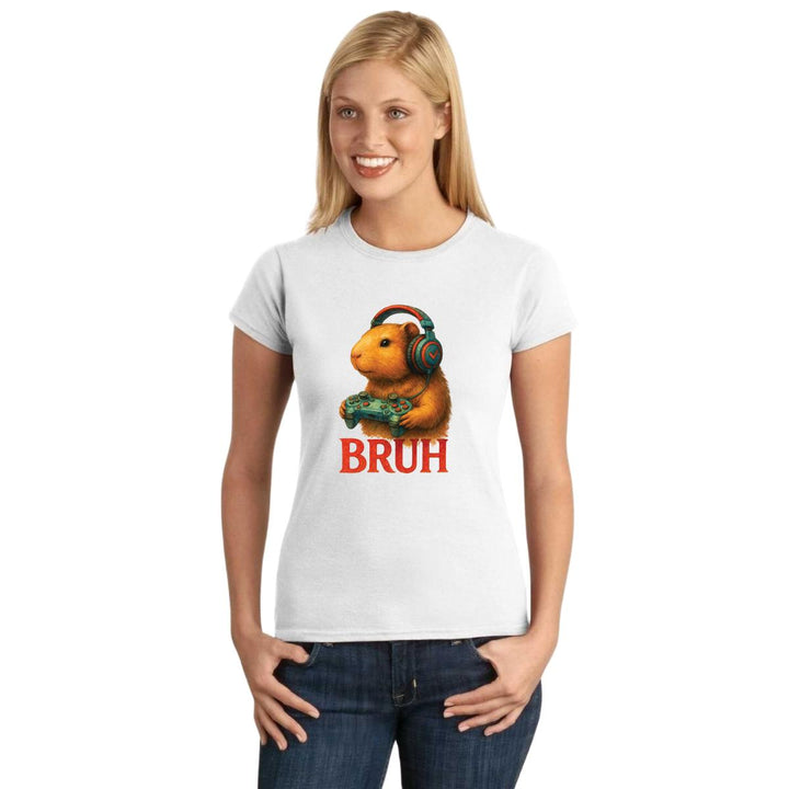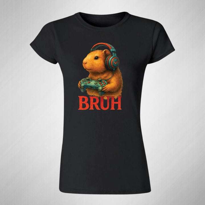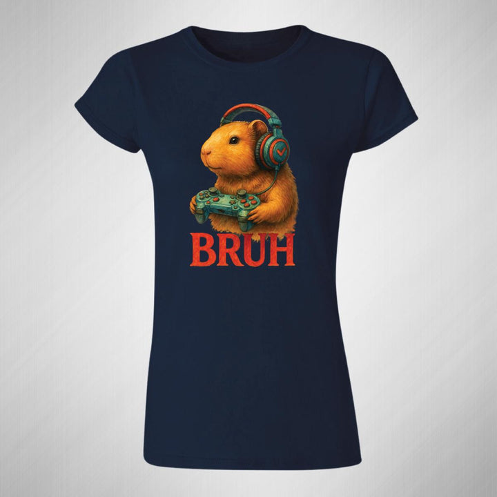 Playera de adulto manga corta, cuello redondo para mujer nueva, diseño Capibara Carpincho Frases original impreso con tecnología DTG (directo a la prenda) tacto cero, uso casual o deportiva, 100% algodón peinado, ajuste semi entallado con costuras laterales. Colores de camiseta para dama: Negro, Blanco, Azul Marino, Gris.