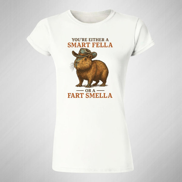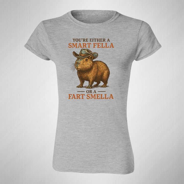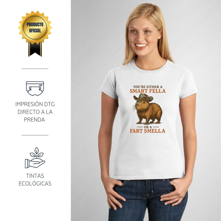Playera de adulto manga corta, cuello redondo para mujer nueva, diseño Capibara Carpincho Frases original impreso con tecnología DTG (directo a la prenda) tacto cero, uso casual o deportiva, 100% algodón peinado, ajuste semi entallado con costuras laterales. Colores de camiseta para dama: Blanco, Gris.