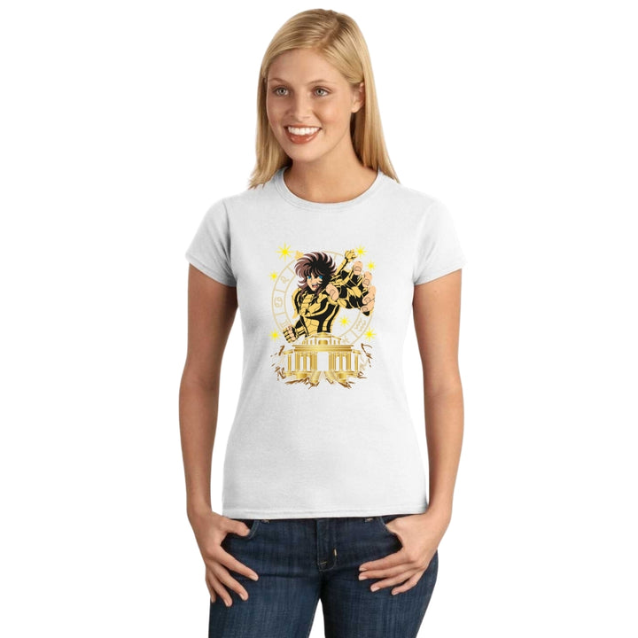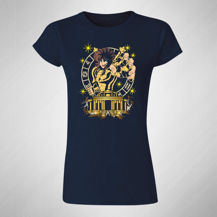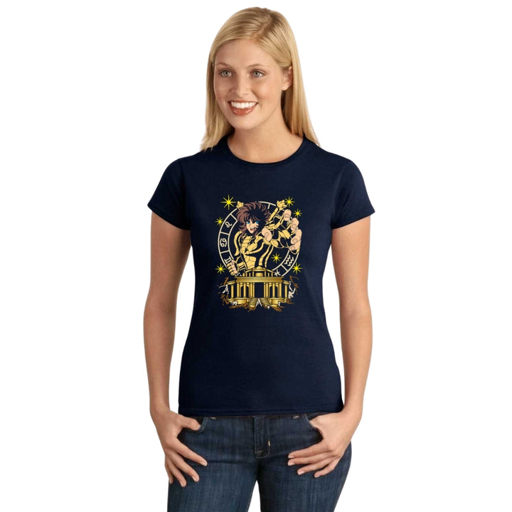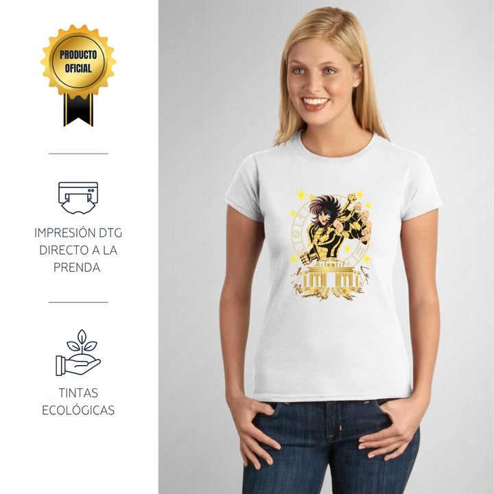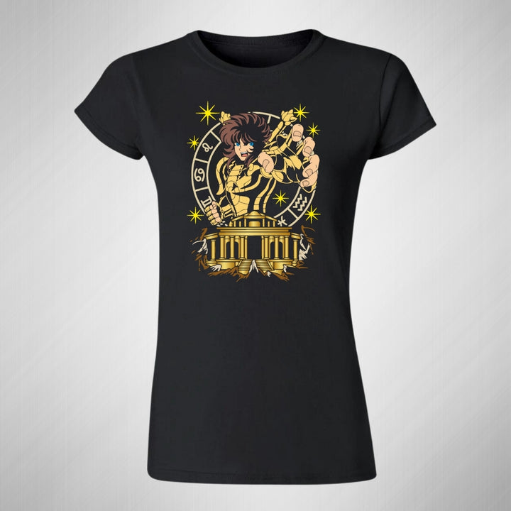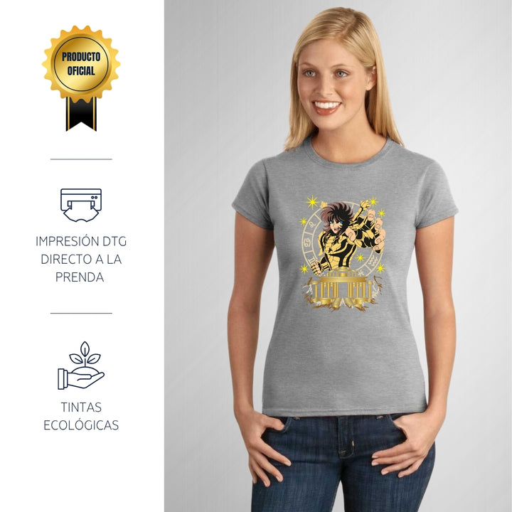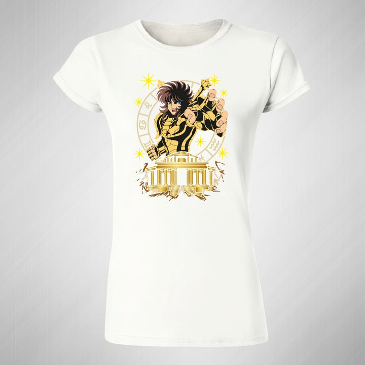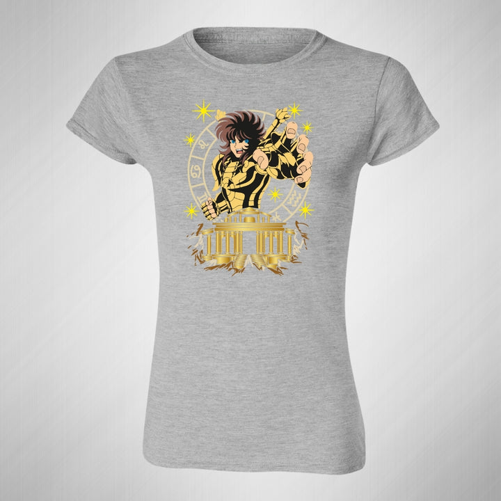 Playera de adulto manga corta, cuello redondo para mujer nueva, diseño Dohko de Libra Saint Seiya original impreso con tecnología DTG (directo a la prenda) tacto cero, uso casual o deportiva, 100% algodón peinado, ajuste semi entallado con costuras laterales. Colores de camiseta para dama: Negro, Blanco, Azul Marino, Gris.