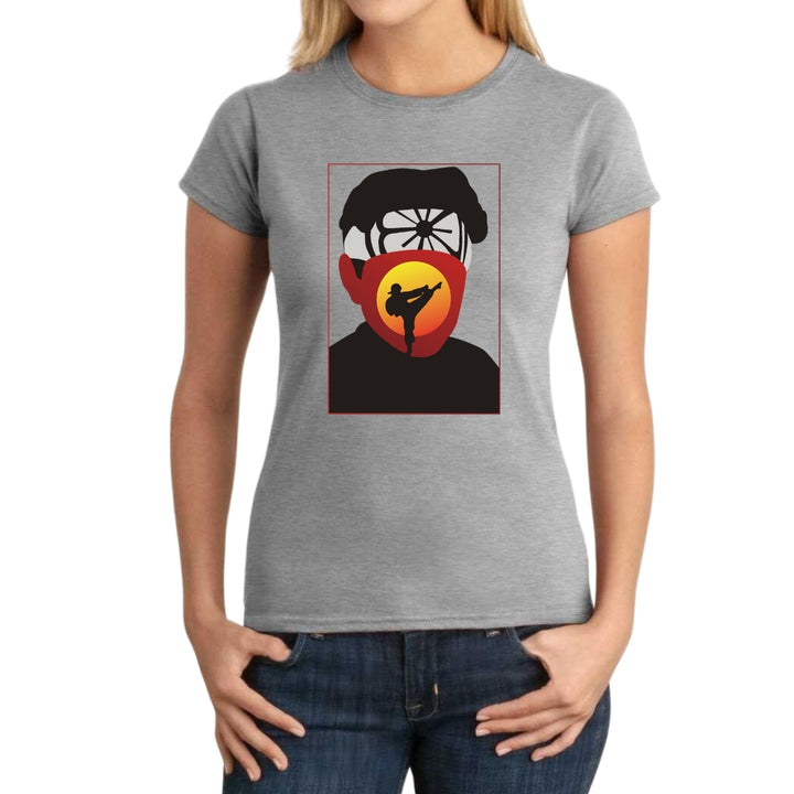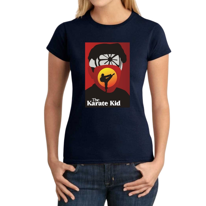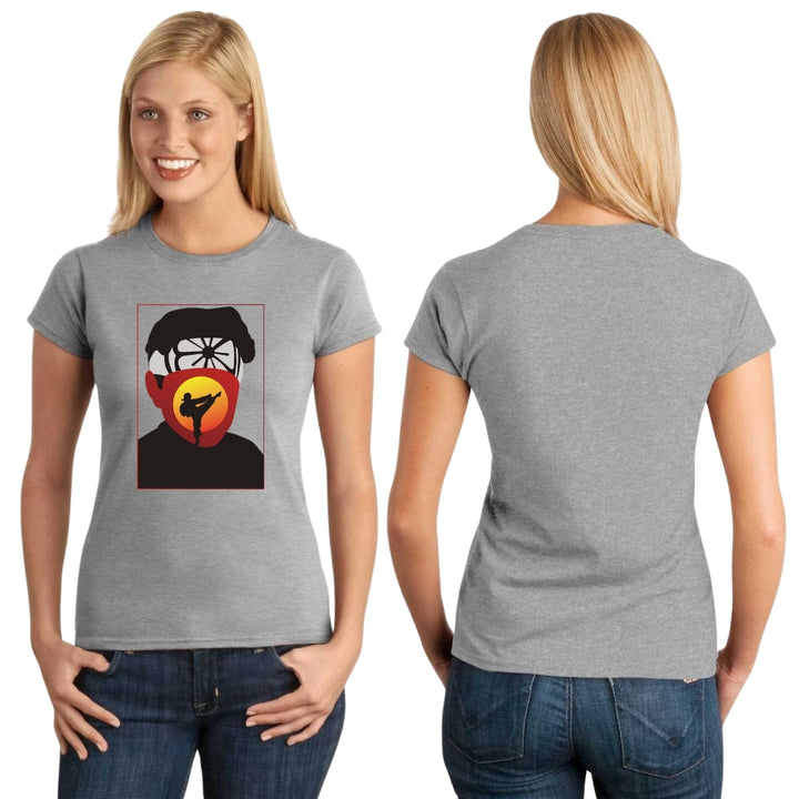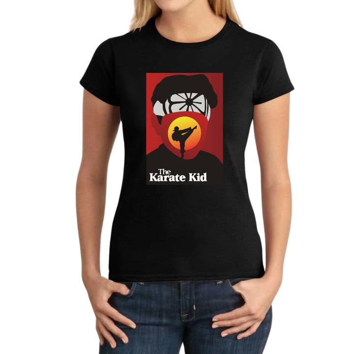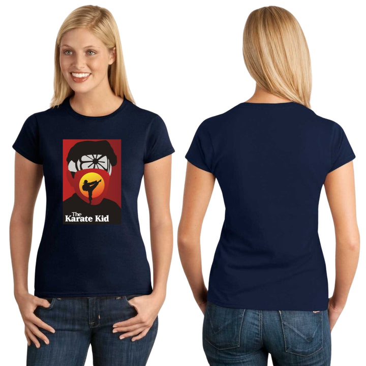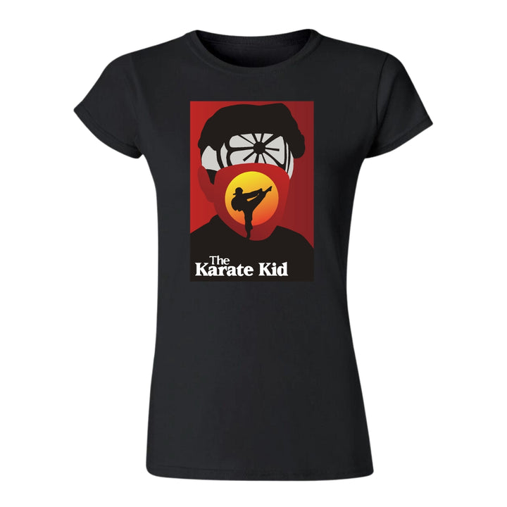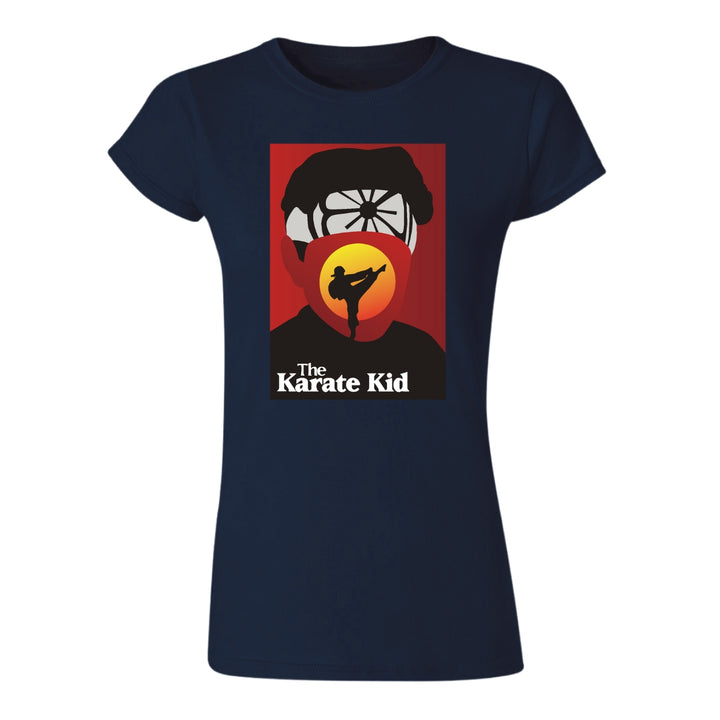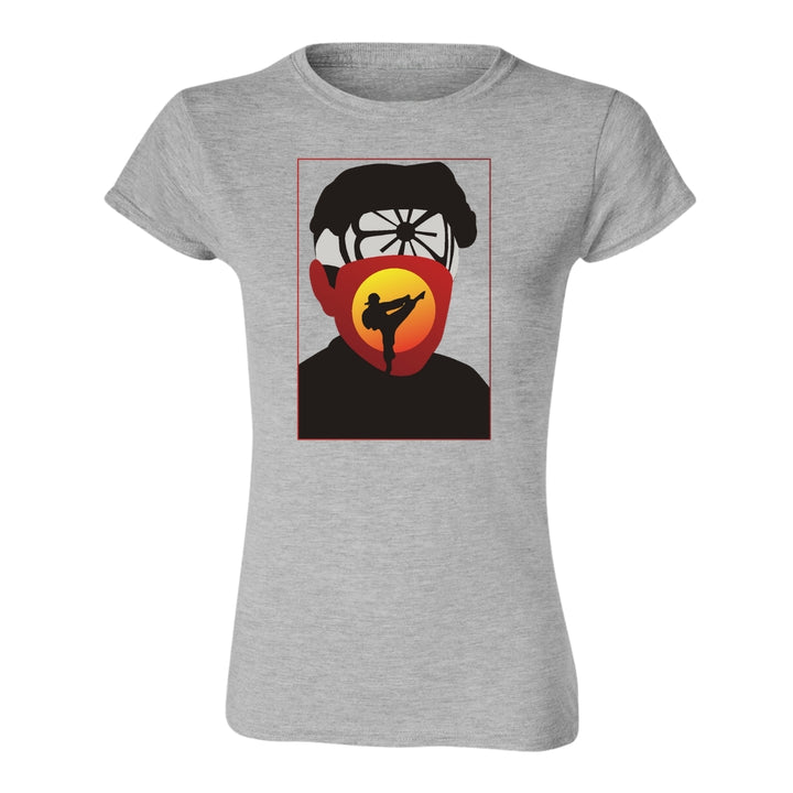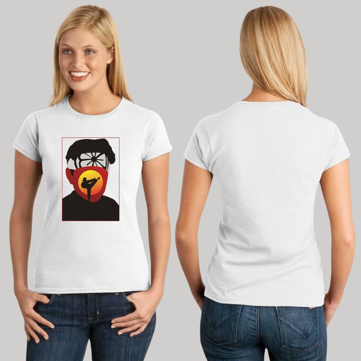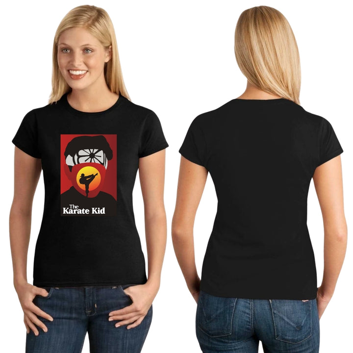 Playera de adulto manga corta, cuello redondo para mujer nueva, diseño Karate Kid original impreso con tecnología DTG (directo a la prenda) tacto cero, uso casual o deportiva, 100% algodón peinado, ajuste semi entallado con costuras laterales. Colores de camiseta para dama: Negro, Blanco, Azul Marino, Gris.