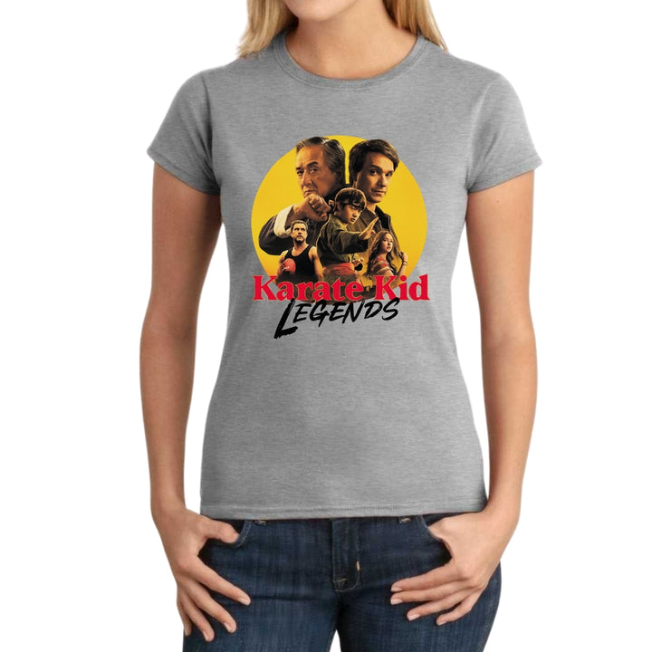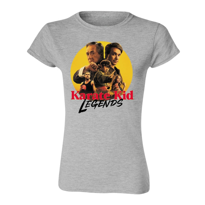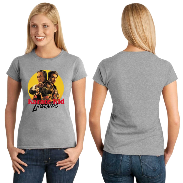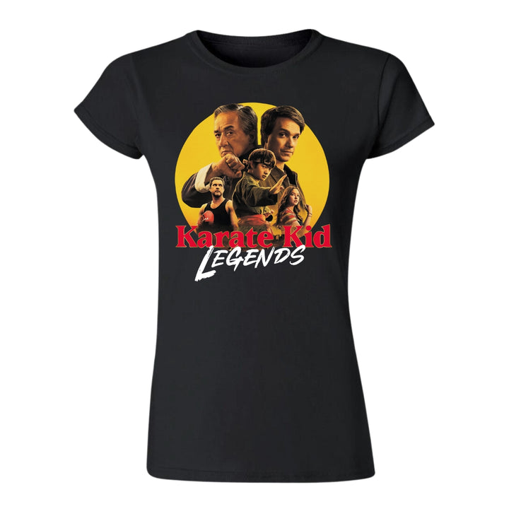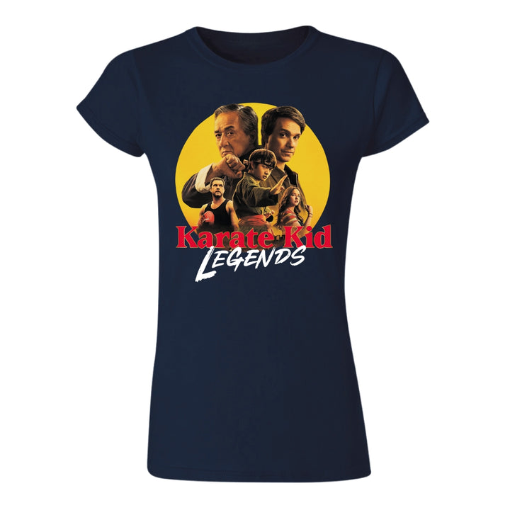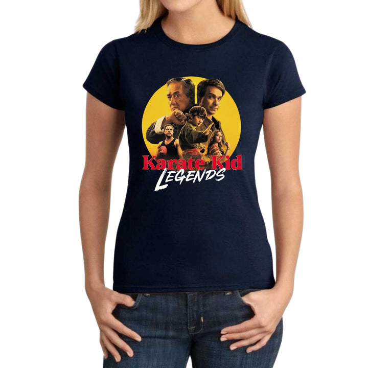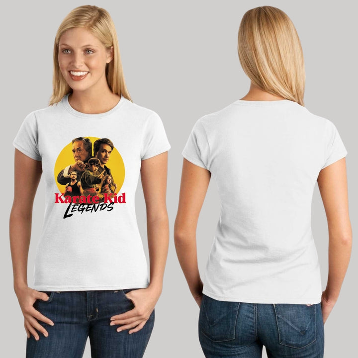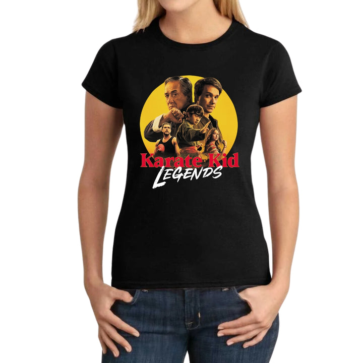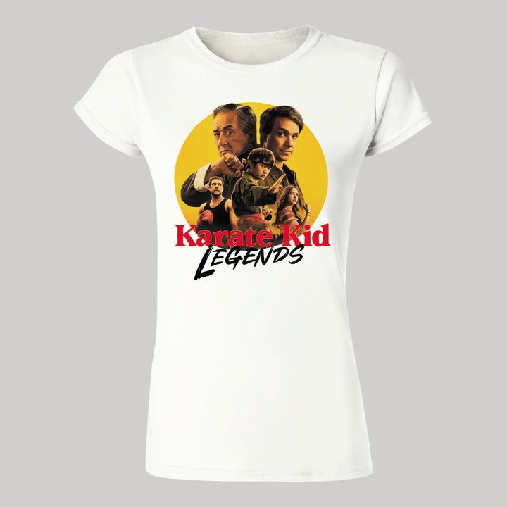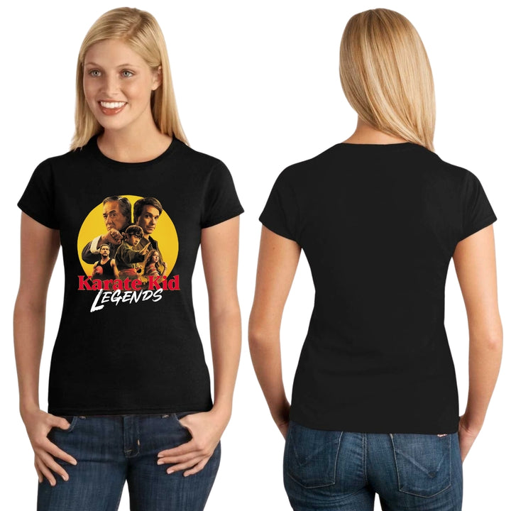 Playera de adulto manga corta, cuello redondo para mujer nueva, diseño Karate Kid Leyendas original impreso con tecnología DTG (directo a la prenda) tacto cero, uso casual o deportiva, 100% algodón peinado, ajuste semi entallado con costuras laterales. Colores de camiseta para dama: Negro, Blanco, Azul Marino, Gris.