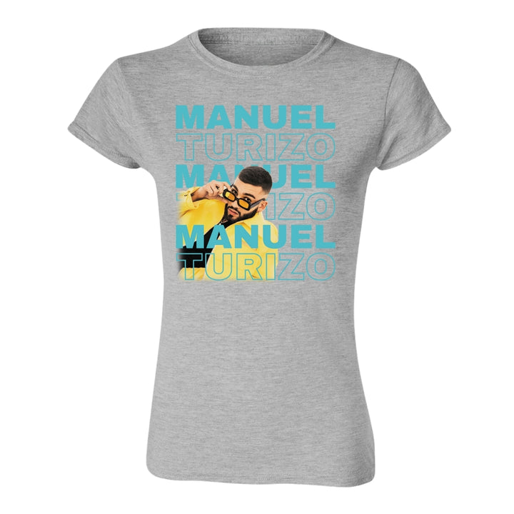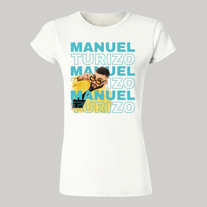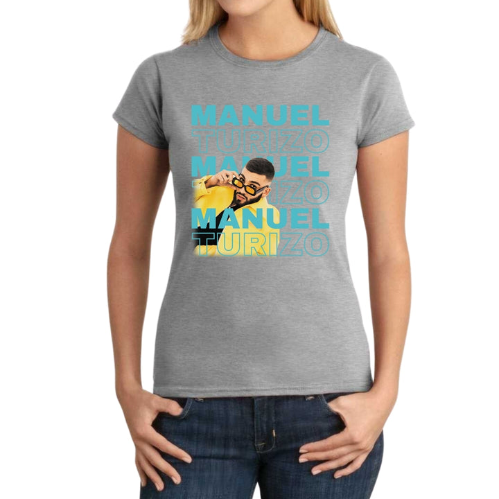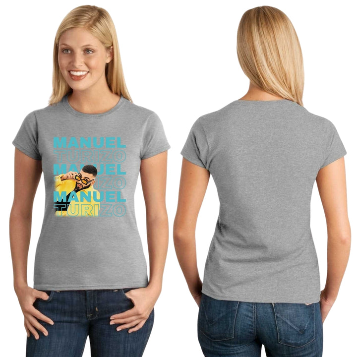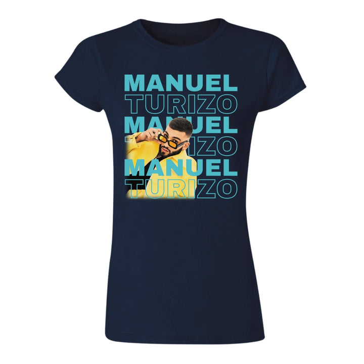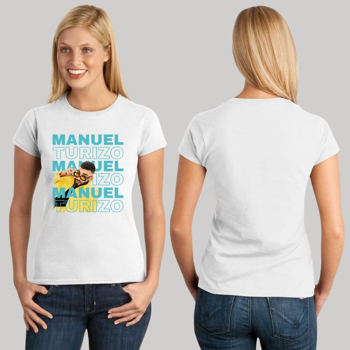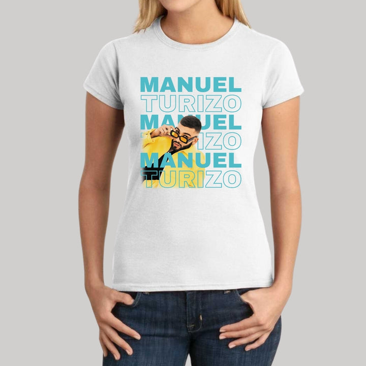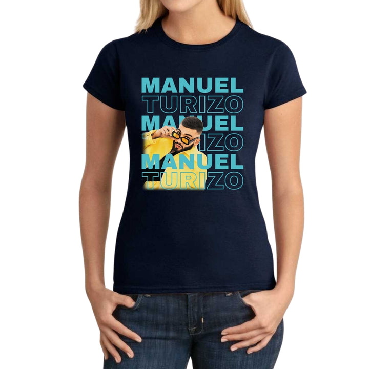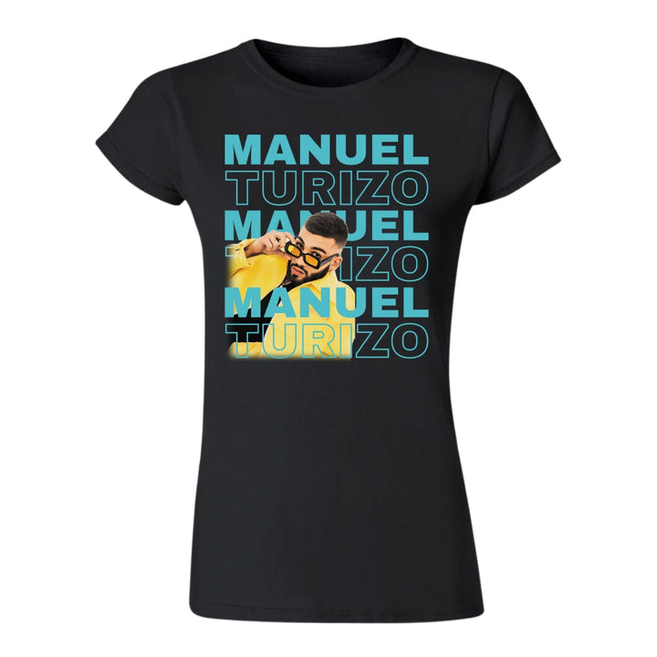 Playera de adulto manga corta, cuello redondo para mujer nueva, diseño Manuel Turizo Tour original impreso con tecnología DTG (directo a la prenda) tacto cero, uso casual o deportiva, 100% algodón peinado, ajuste semi entallado con costuras laterales. Colores de camiseta para dama: Negro, Blanco, Azul Marino, Gris.