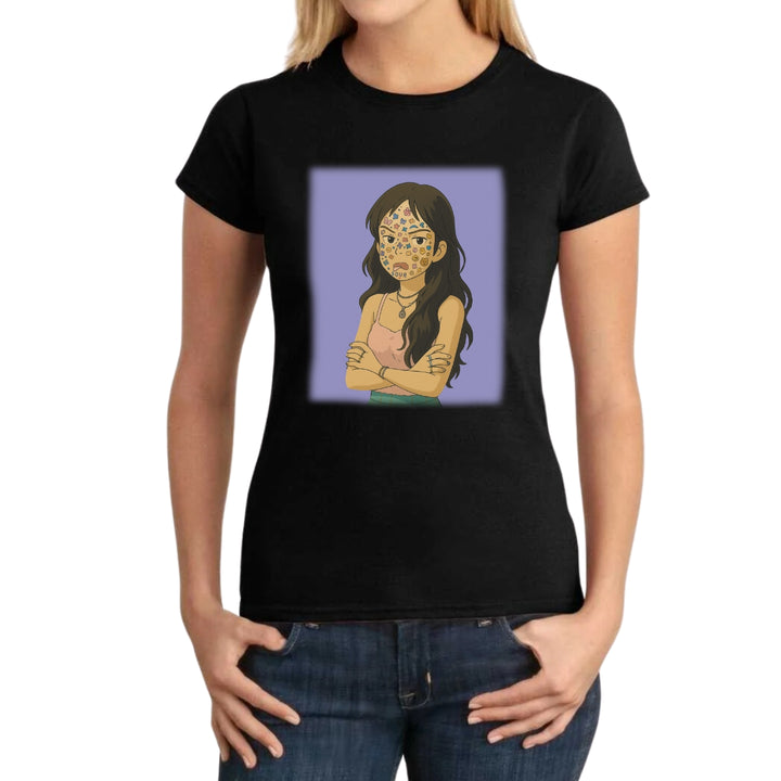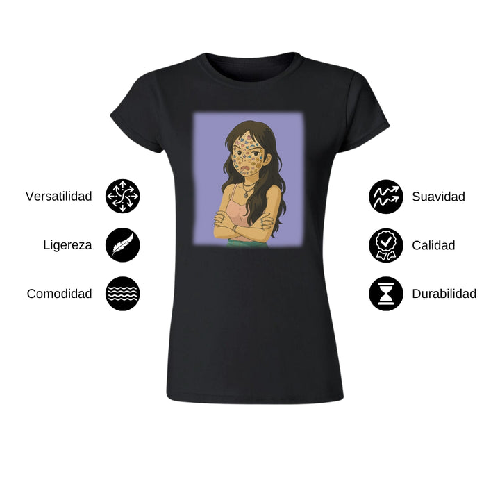Playera de adulto manga corta, cuello redondo para mujer nueva, diseño Olivia Rodrigo Estilo Ghibli original impreso con tecnología DTG (directo a la prenda) tacto cero, uso casual o deportiva, 100% algodón peinado, ajuste semi entallado con costuras laterales.