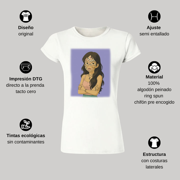 - ORIGINALIDAD Y SOSTENIBILIDAD: Playera de mujer manga corta, Producto con un diseño original impreso con tecnología DTG (directo a la prenda) tacto cero. Se utilizan tintas ecológicas sin contaminantes que se adhieren a las fibras de la ropa, garantizando calidad, colores vivos e imagen de larga duración en la camiseta sin comprometer el planeta.