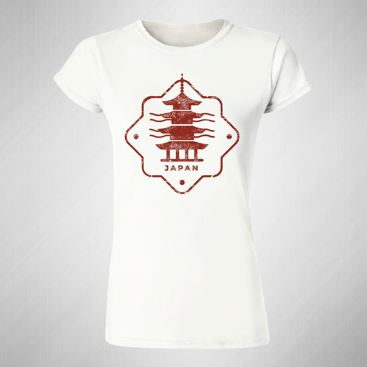 Playera de adulto manga corta, cuello redondo para mujer nueva, diseño País Japón original impreso con tecnología DTG (directo a la prenda) tacto cero, uso casual o deportiva, 100% algodón peinado, ajuste semi entallado con costuras laterales. Colores de camiseta para dama: Blanco.