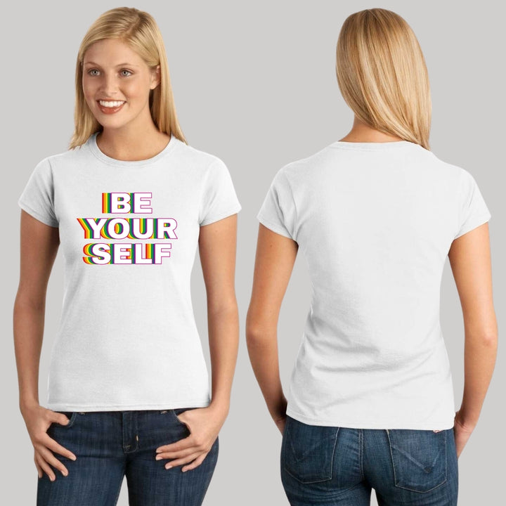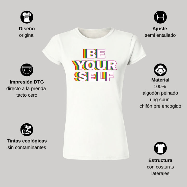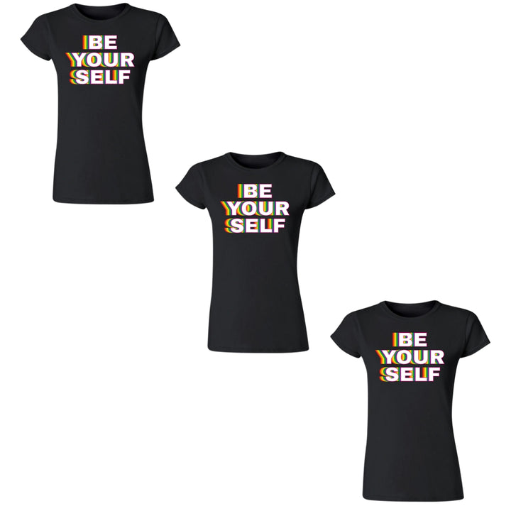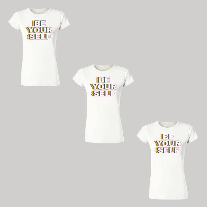 Paquete de 3 playeras de adulto manga corta, cuello redondo para mujer nueva, diseño Pride Be yourself original impreso con tecnología DTG (directo a la prenda) tacto cero, uso casual o deportiva, 100% algodón peinado, ajuste semi entallado con costuras laterales.