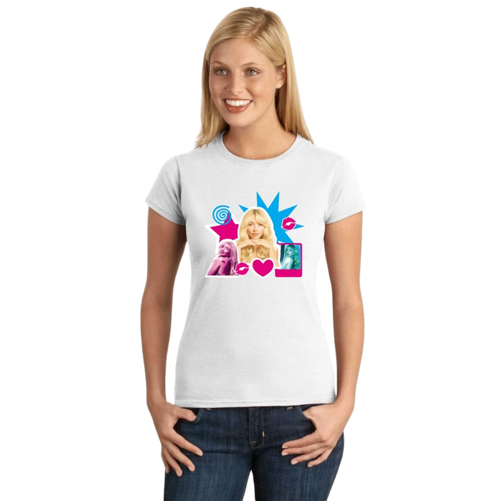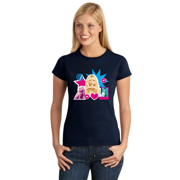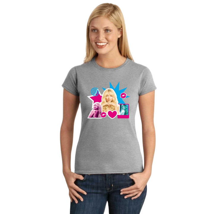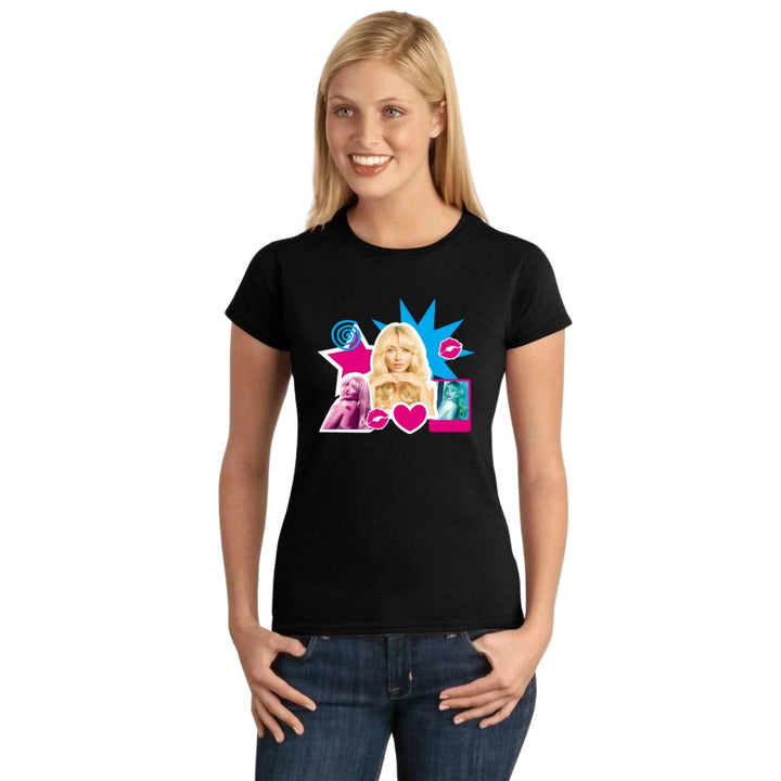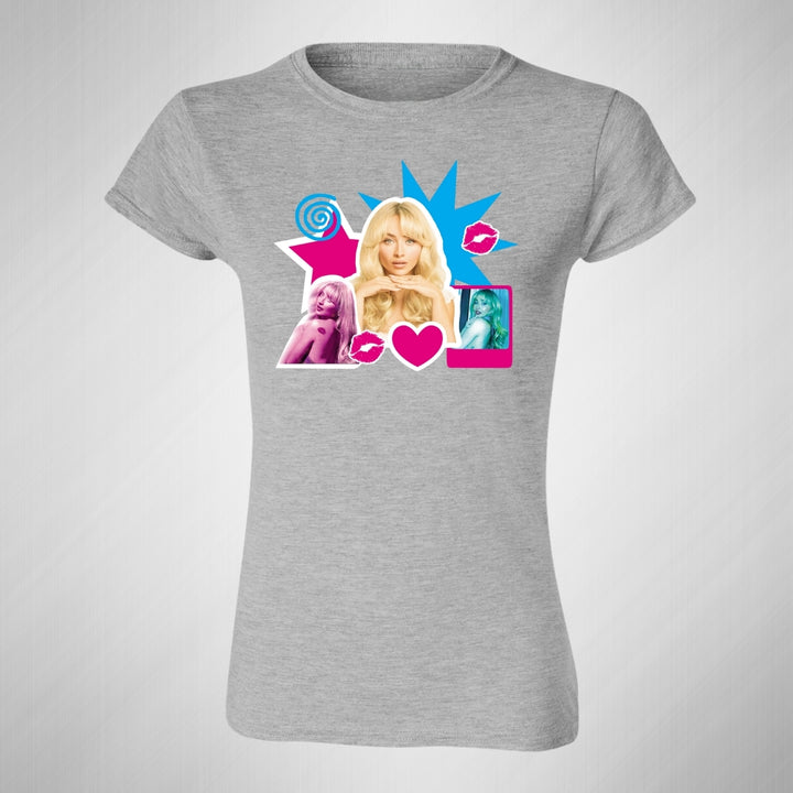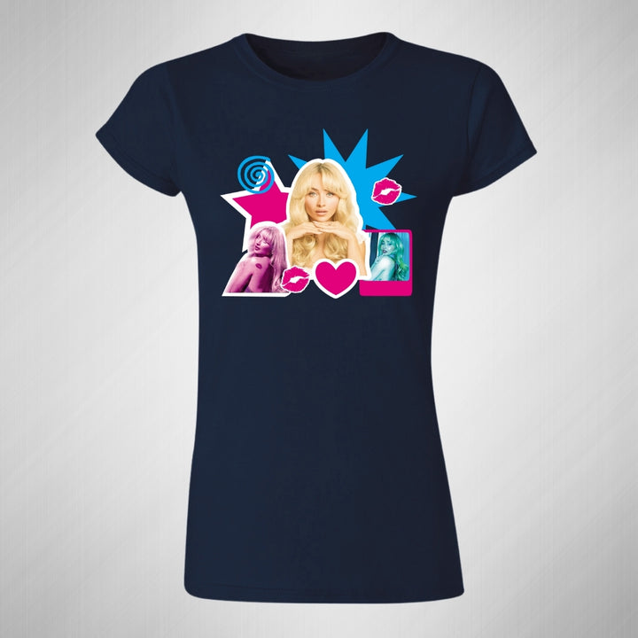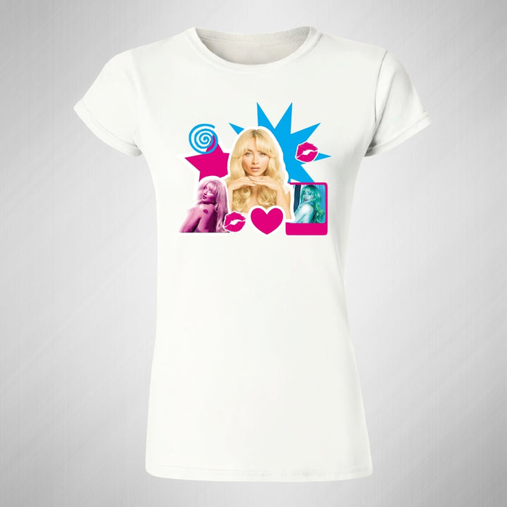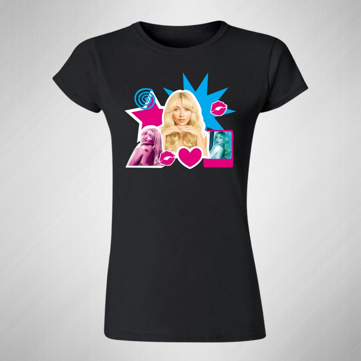 Playera de adulto manga corta, cuello redondo para mujer nueva, diseño Sabrina CaSHenter Concierto original impreso con tecnología DTG (directo a la prenda) tacto cero, uso casual o deportiva, 100% algodón peinado, ajuste semi entallado con costuras laterales. Colores de camiseta para dama: Negro, Blanco, Azul Marino, Gris.
