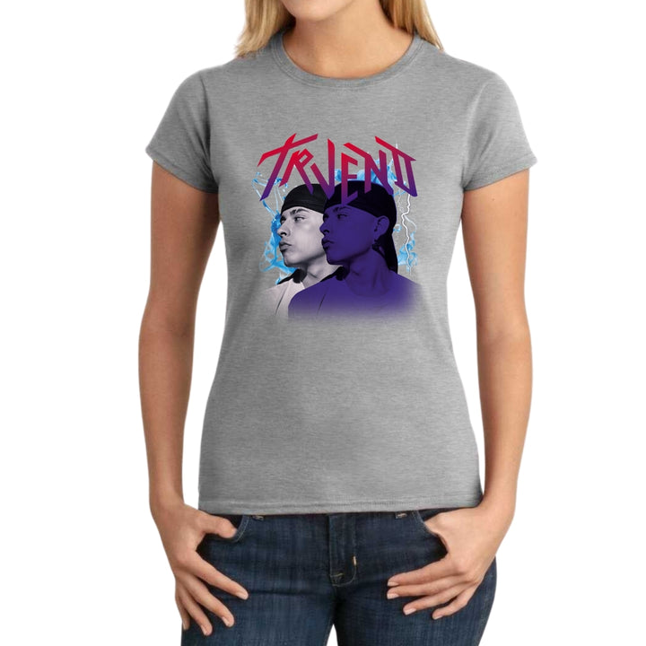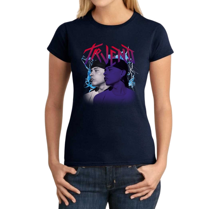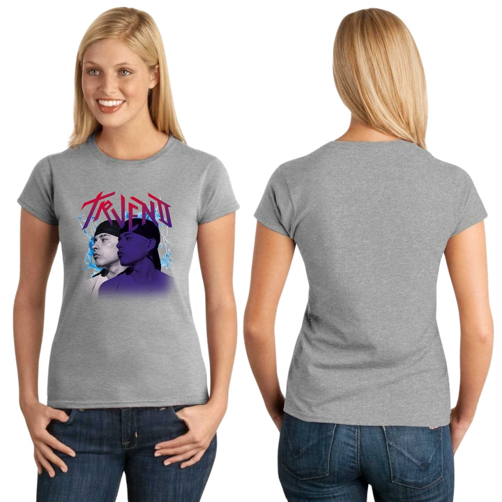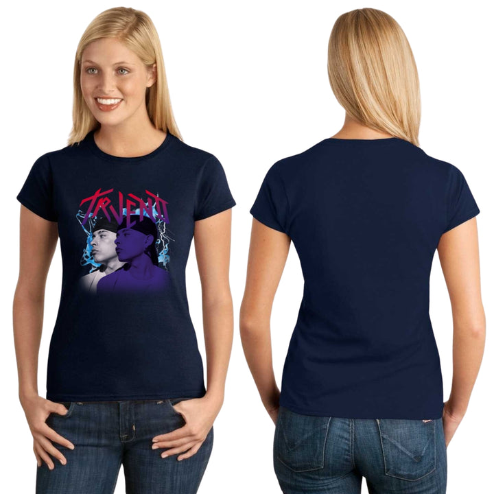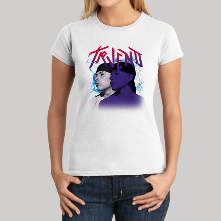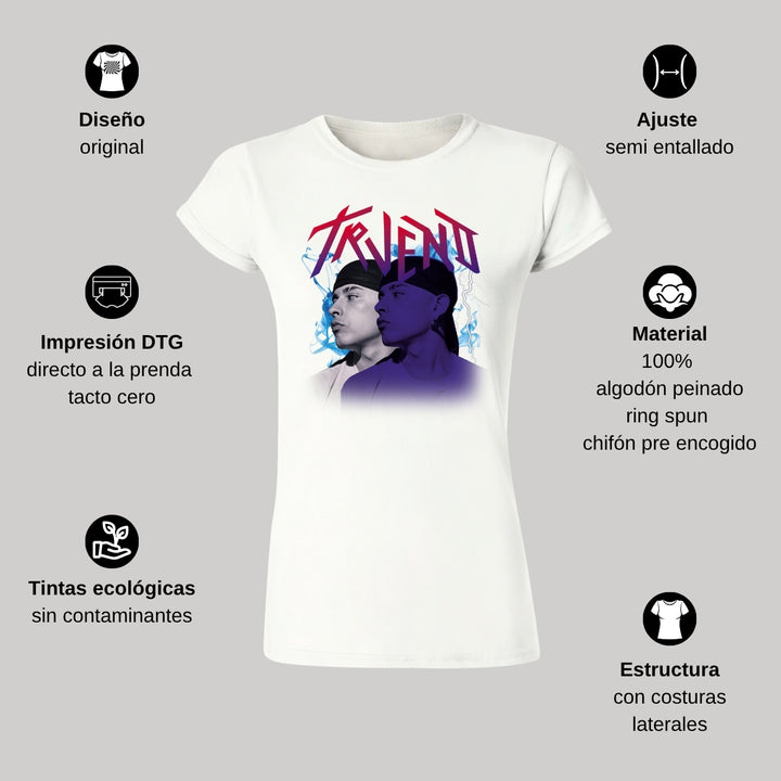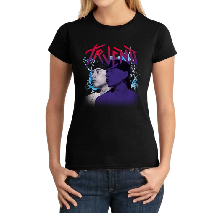 Playera de adulto manga corta, cuello redondo para mujer nueva, diseño Trueno Rapero Rap original impreso con tecnología DTG (directo a la prenda) tacto cero, uso casual o deportiva, 100% algodón peinado, ajuste semi entallado con costuras laterales. Colores de camiseta para dama: Negro, Blanco, Azul Marino, Gris.