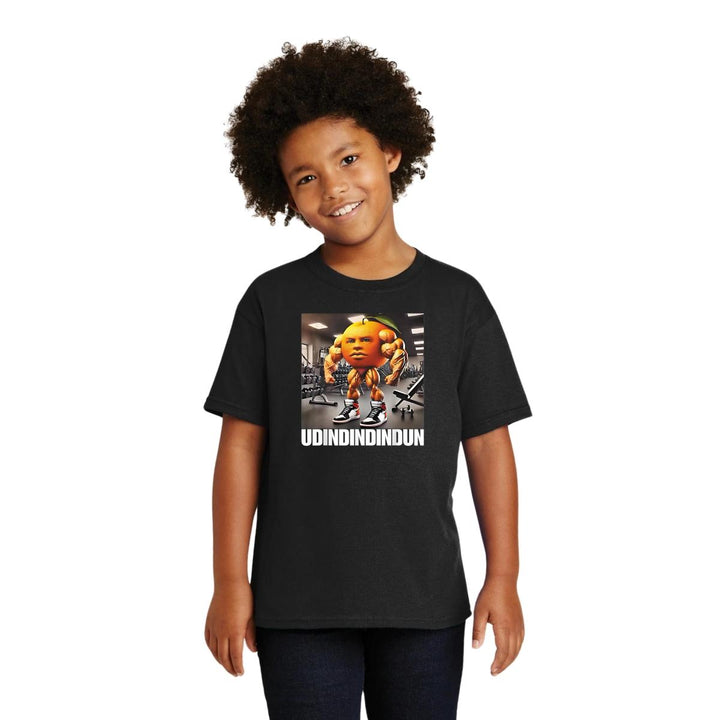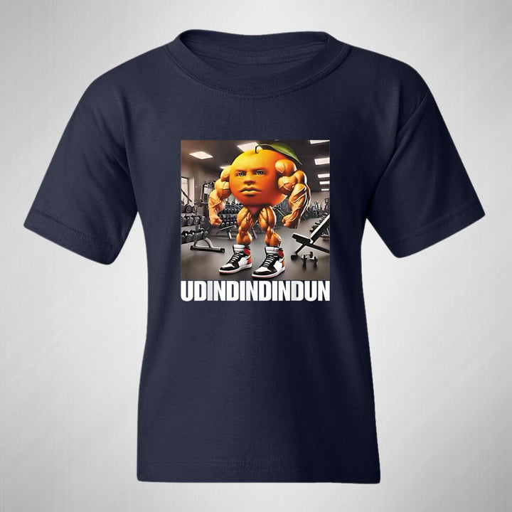 Playera infantil manga corta, cuello redondo para niño o niña nueva, diseño Brainrot Udindindindindung original impreso con tecnología DTG (directo a la prenda) tacto cero, uso casual o deportiva, 100% algodón chifón pre encogido, estructura tubular sin costuras laterales. Colores de camiseta: Negro, Azul Marino.