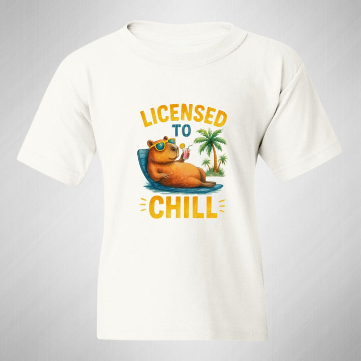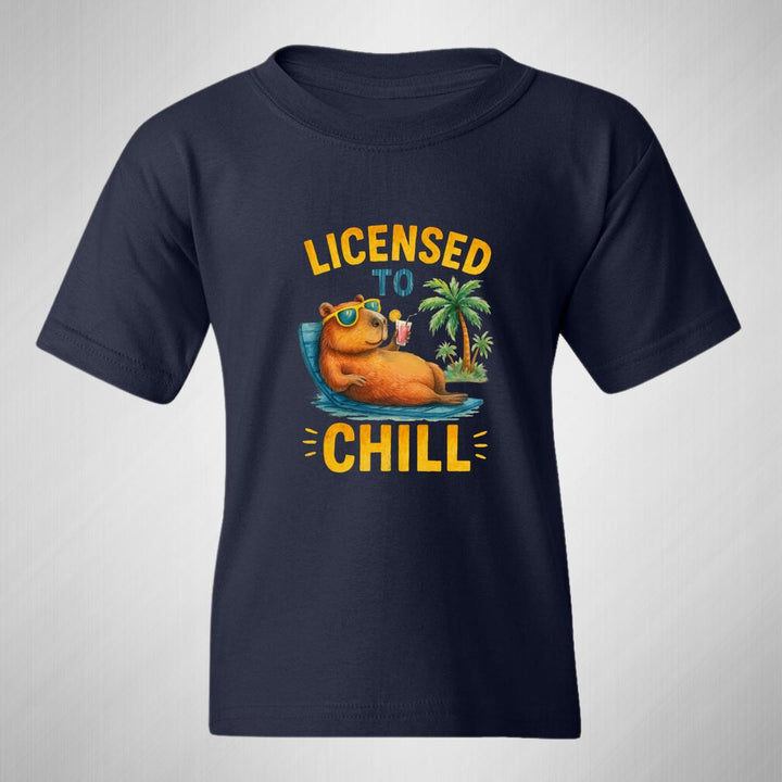 Playera infantil manga corta, cuello redondo para niño o niña nueva, diseño Capibara Carpincho Frases original impreso con tecnología DTG (directo a la prenda) tacto cero, uso casual o deportiva, 100% algodón chifón pre encogido, estructura tubular sin costuras laterales. Colores de camiseta: Negro, Blanco, Azul Marino.