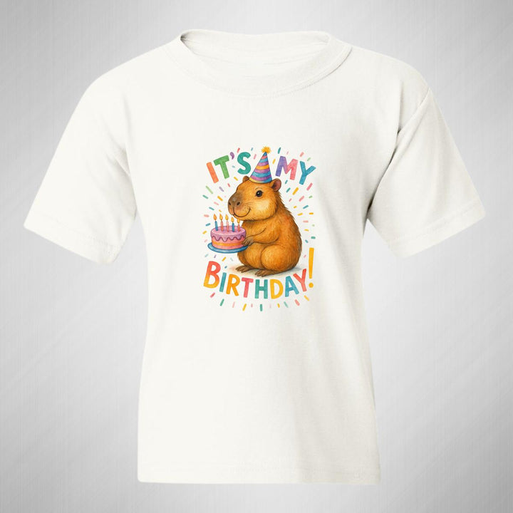 Playera infantil manga corta, cuello redondo para niño o niña nueva, diseño Capibara Carpincho Frases original impreso con tecnología DTG (directo a la prenda) tacto cero, uso casual o deportiva, 100% algodón chifón pre encogido, estructura tubular sin costuras laterales. Colores de camiseta: Negro, Blanco, Azul Marino.