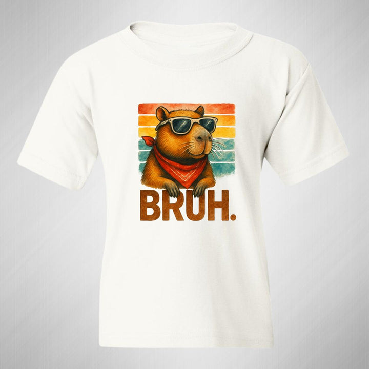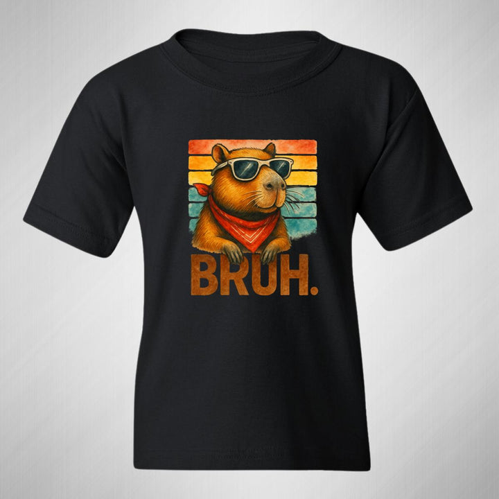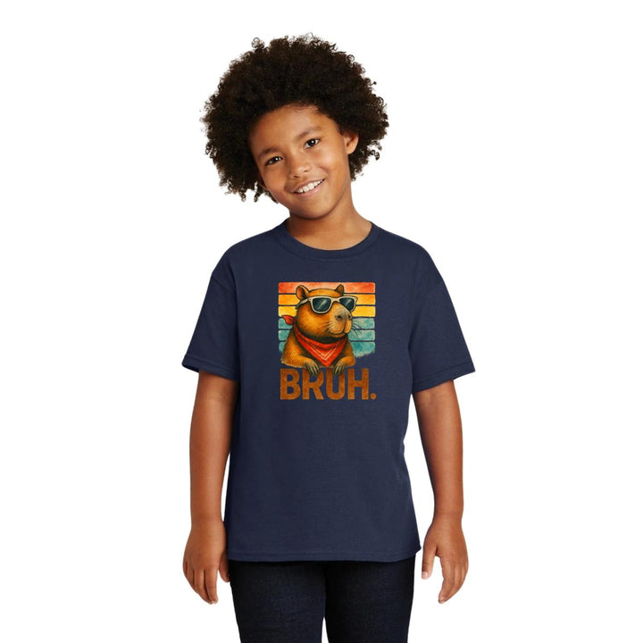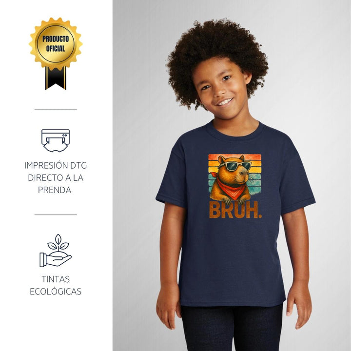 Playera infantil manga corta, cuello redondo para niño o niña nueva, diseño Capibara Carpincho Frases original impreso con tecnología DTG (directo a la prenda) tacto cero, uso casual o deportiva, 100% algodón chifón pre encogido, estructura tubular sin costuras laterales. Colores de camiseta: Negro, Blanco, Azul Marino.