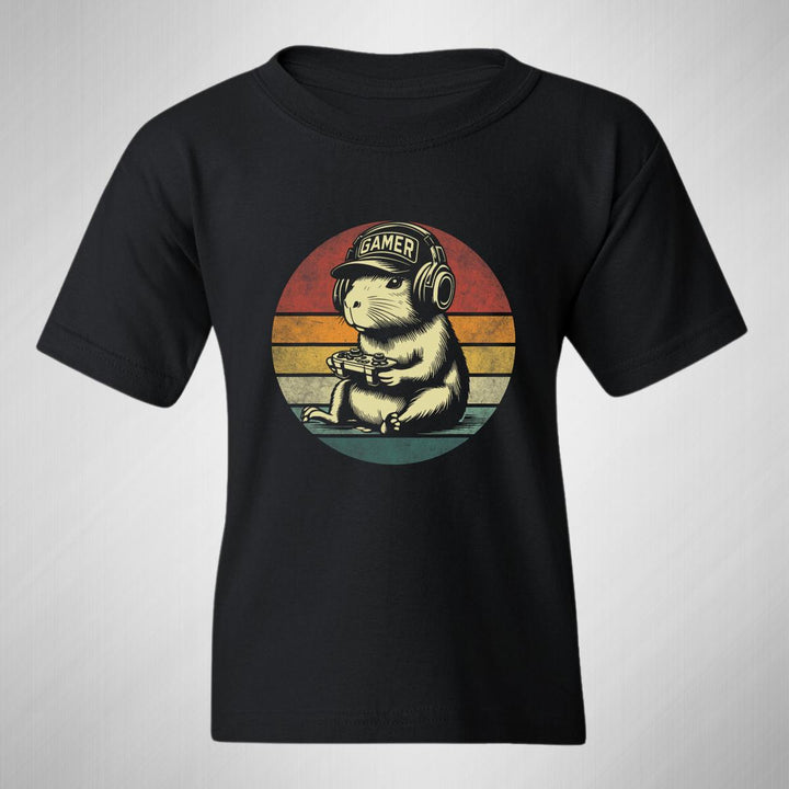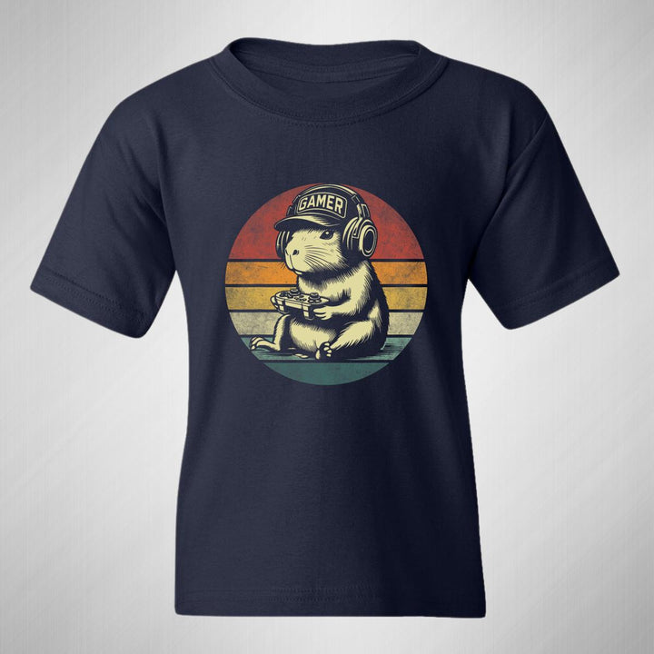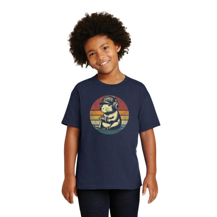 Playera infantil manga corta, cuello redondo para niño o niña nueva, diseño Capibara Carpincho Frases original impreso con tecnología DTG (directo a la prenda) tacto cero, uso casual o deportiva, 100% algodón chifón pre encogido, estructura tubular sin costuras laterales. Colores de camiseta: Negro, Azul Marino.