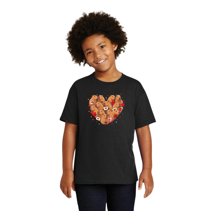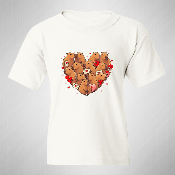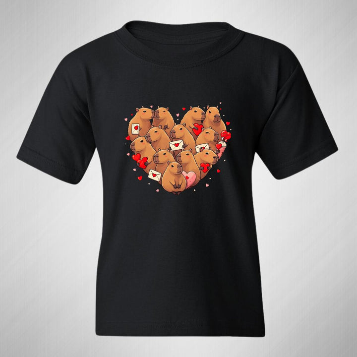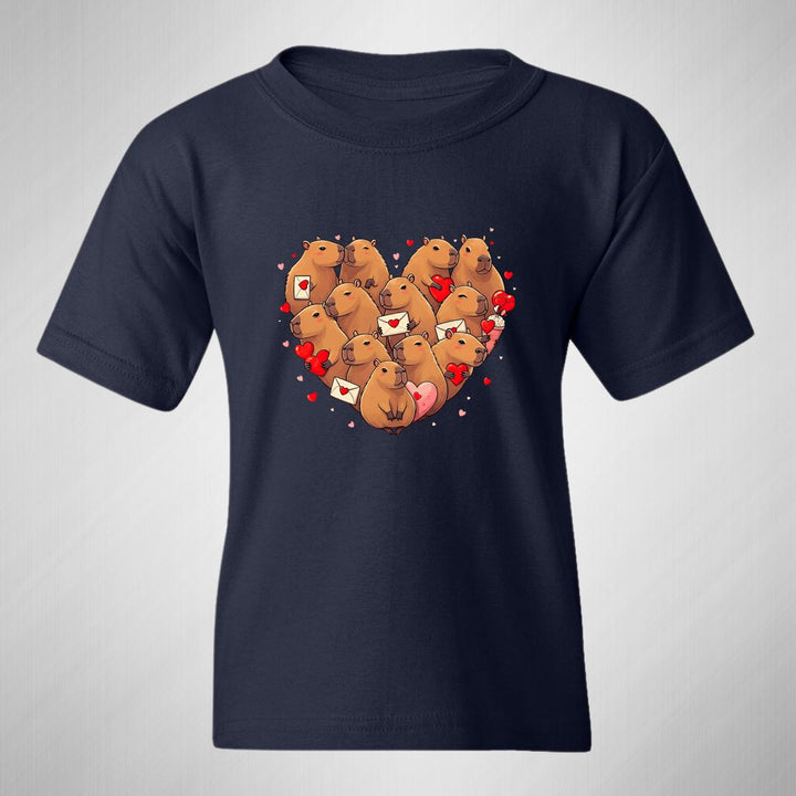 Playera infantil manga corta, cuello redondo para niño o niña nueva, diseño Capibara Carpincho Frases original impreso con tecnología DTG (directo a la prenda) tacto cero, uso casual o deportiva, 100% algodón chifón pre encogido, estructura tubular sin costuras laterales. Colores de camiseta: Negro, Blanco, Azul Marino.