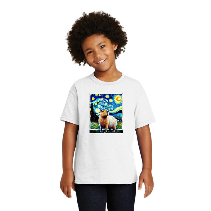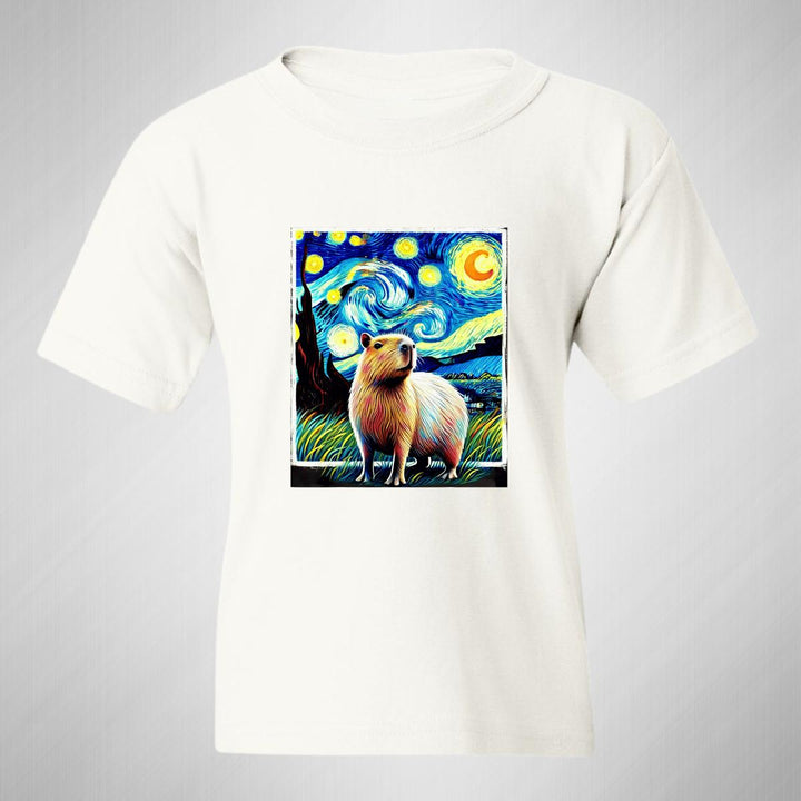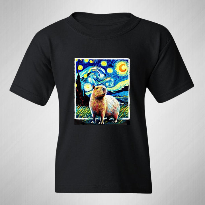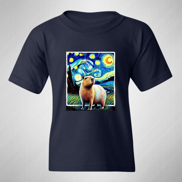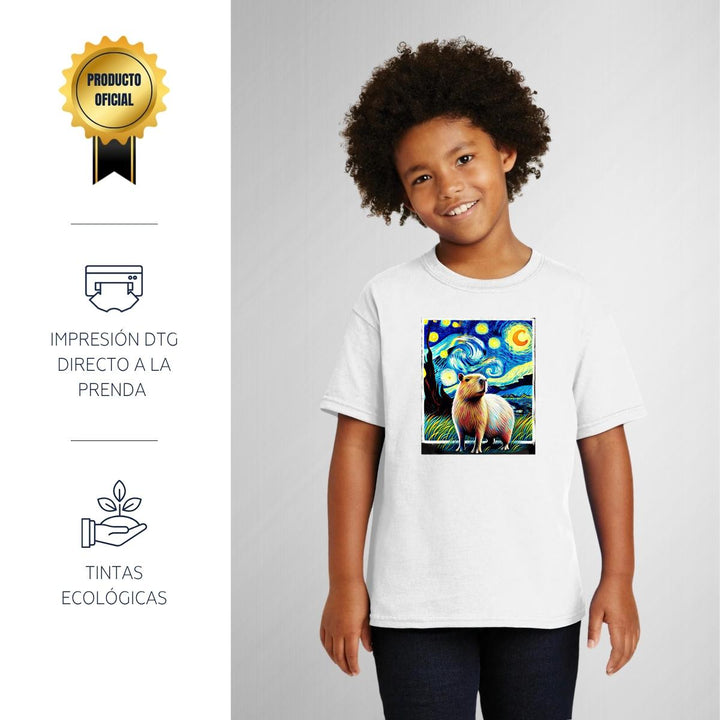 Playera infantil manga corta, cuello redondo para niño o niña nueva, diseño Capibara Carpincho Frases original impreso con tecnología DTG (directo a la prenda) tacto cero, uso casual o deportiva, 100% algodón chifón pre encogido, estructura tubular sin costuras laterales. Colores de camiseta: Negro, Blanco, Azul Marino.