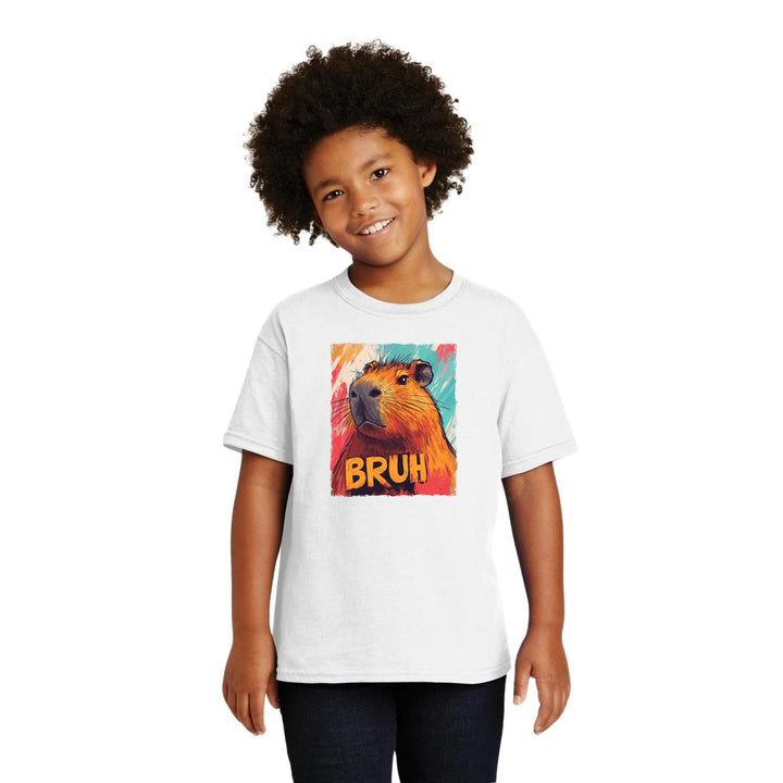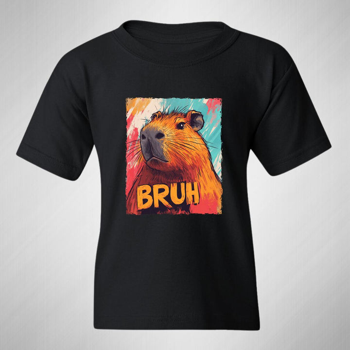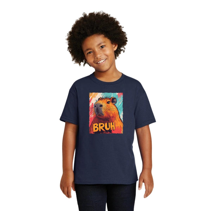 Playera infantil manga corta, cuello redondo para niño o niña nueva, diseño Capibara Carpincho Frases original impreso con tecnología DTG (directo a la prenda) tacto cero, uso casual o deportiva, 100% algodón chifón pre encogido, estructura tubular sin costuras laterales. Colores de camiseta: Negro, Blanco, Azul Marino.