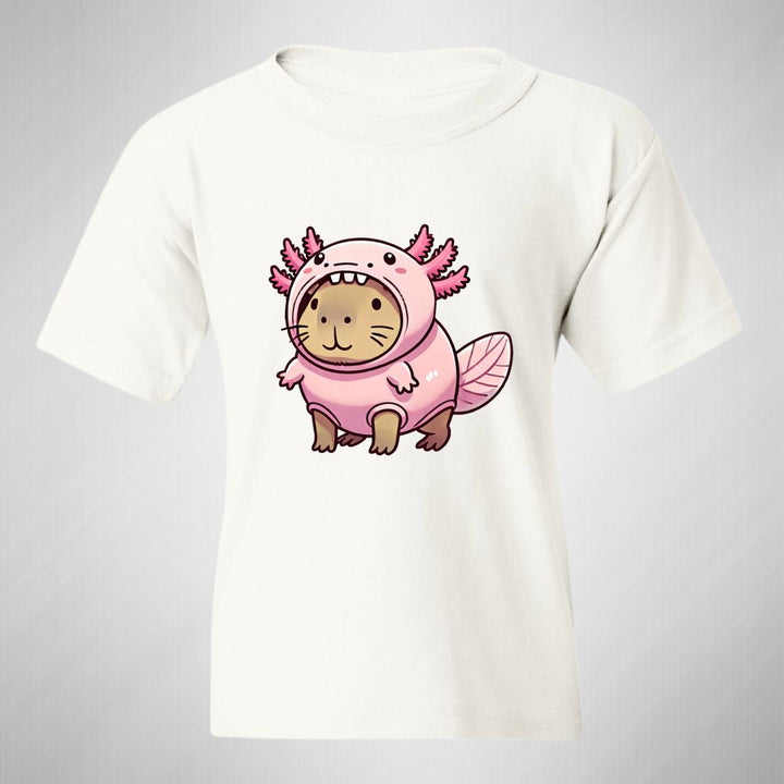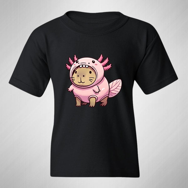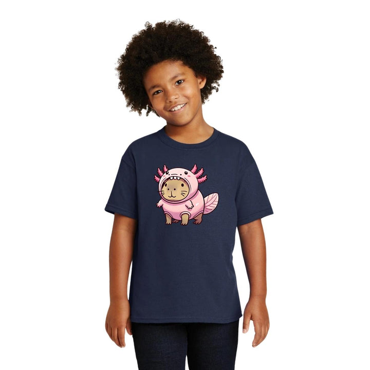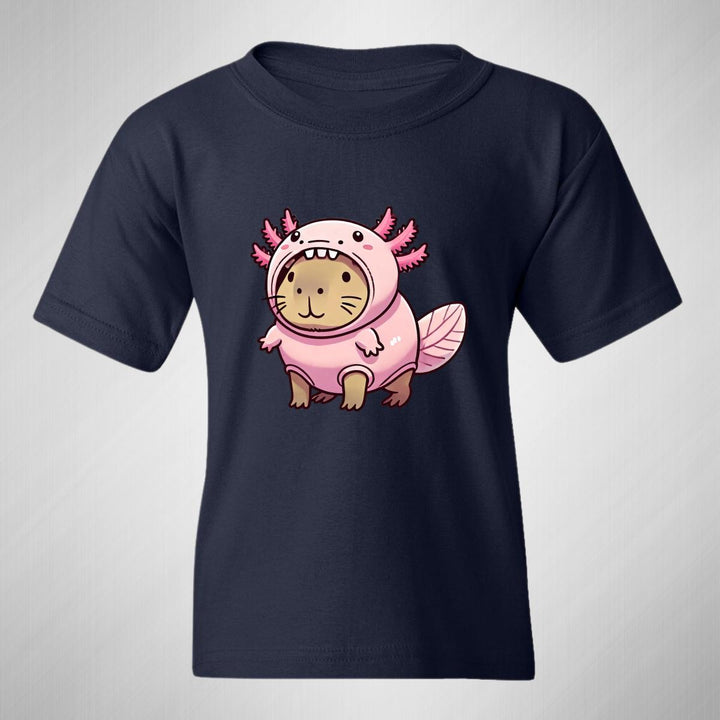 Playera infantil manga corta, cuello redondo para niño o niña nueva, diseño Capibara Carpincho Frases original impreso con tecnología DTG (directo a la prenda) tacto cero, uso casual o deportiva, 100% algodón chifón pre encogido, estructura tubular sin costuras laterales. Colores de camiseta: Negro, Blanco, Azul Marino.