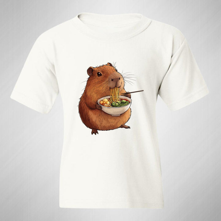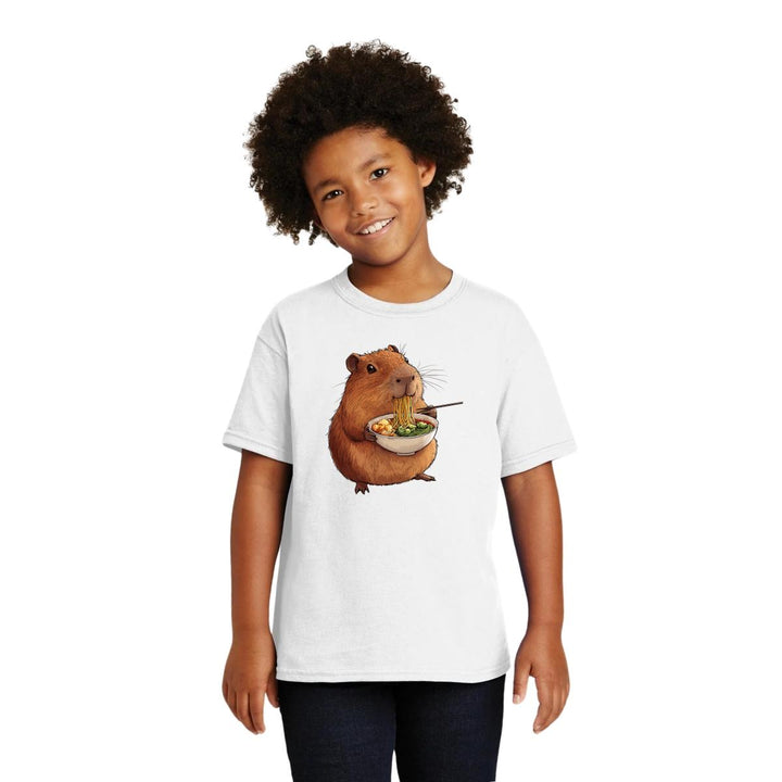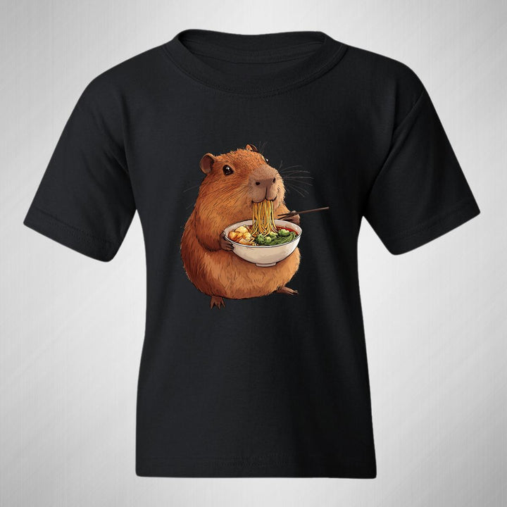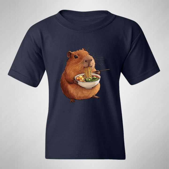 Playera infantil manga corta, cuello redondo para niño o niña nueva, diseño Capibara Carpincho Frases original impreso con tecnología DTG (directo a la prenda) tacto cero, uso casual o deportiva, 100% algodón chifón pre encogido, estructura tubular sin costuras laterales. Colores de camiseta: Negro, Blanco, Azul Marino.