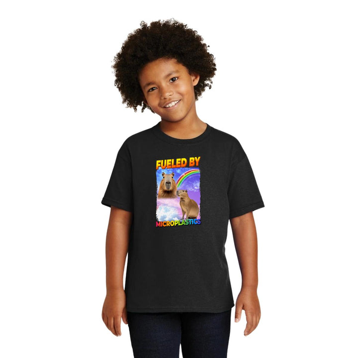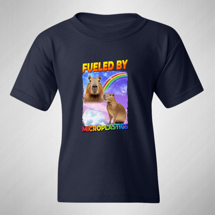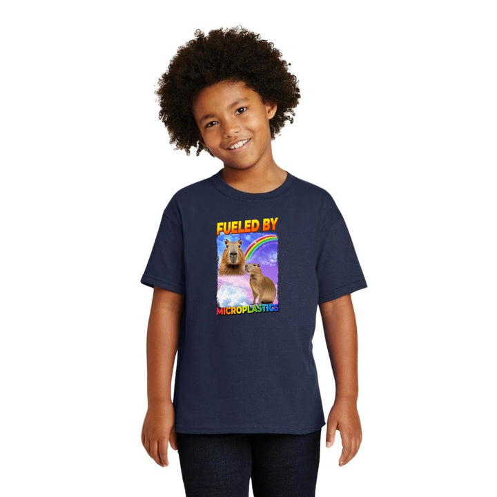 Playera infantil manga corta, cuello redondo para niño o niña nueva, diseño Capibara Carpincho Frases original impreso con tecnología DTG (directo a la prenda) tacto cero, uso casual o deportiva, 100% algodón chifón pre encogido, estructura tubular sin costuras laterales. Colores de camiseta: Negro, Blanco, Azul Marino.