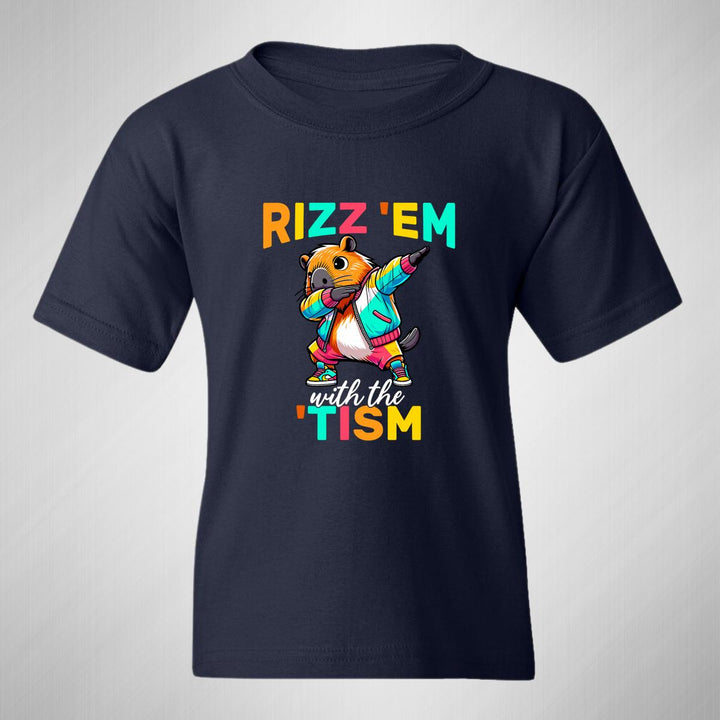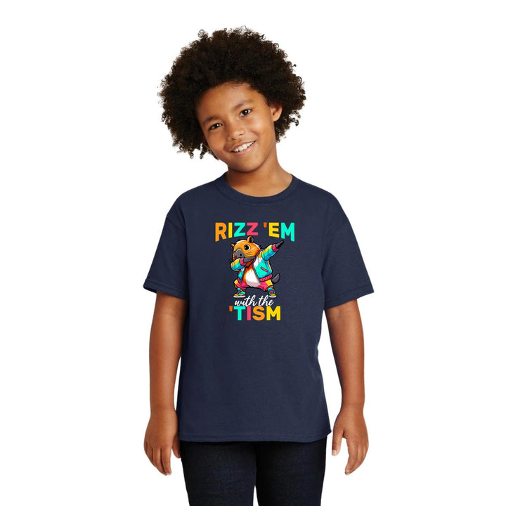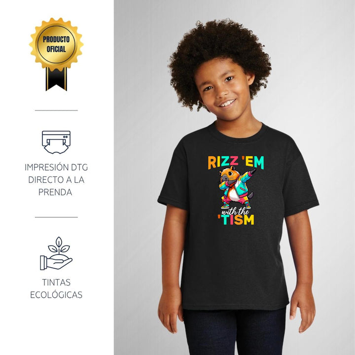 Playera infantil manga corta, cuello redondo para niño o niña nueva, diseño Capibara Carpincho Frases original impreso con tecnología DTG (directo a la prenda) tacto cero, uso casual o deportiva, 100% algodón chifón pre encogido, estructura tubular sin costuras laterales. Colores de camiseta: Negro, Azul Marino.