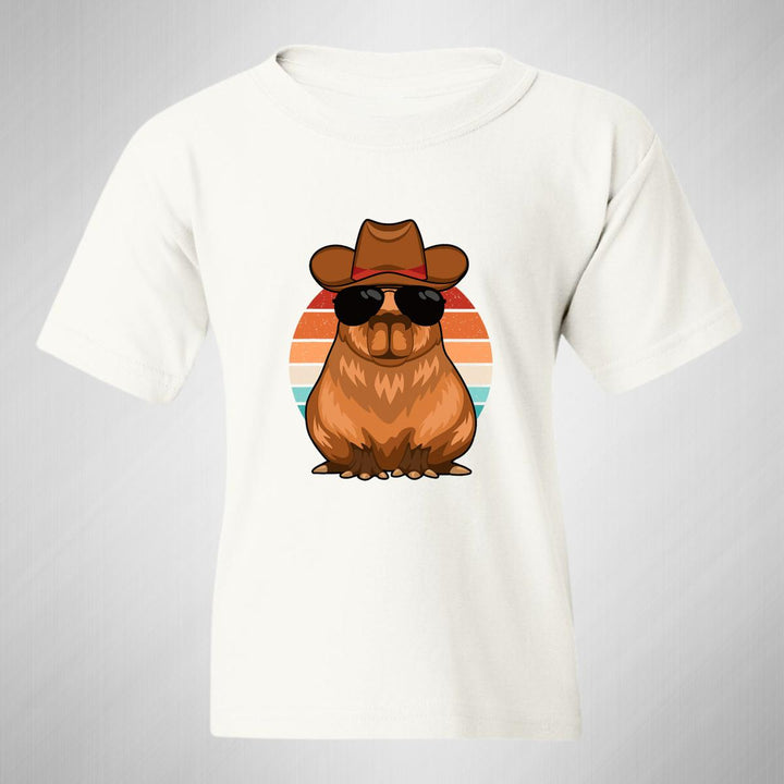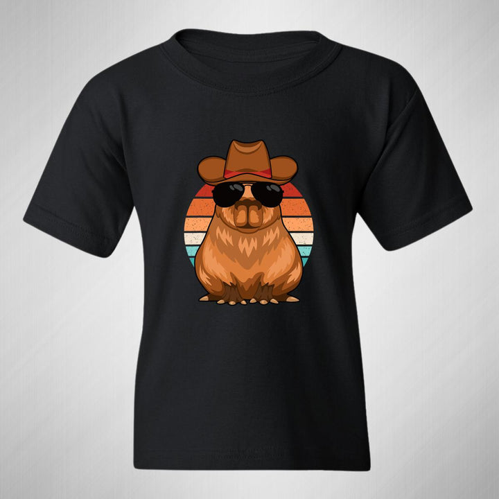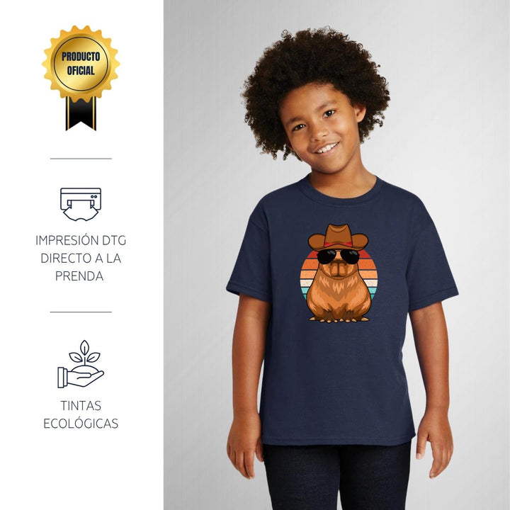 Playera infantil manga corta, cuello redondo para niño o niña nueva, diseño Capibara Carpincho Frases original impreso con tecnología DTG (directo a la prenda) tacto cero, uso casual o deportiva, 100% algodón chifón pre encogido, estructura tubular sin costuras laterales. Colores de camiseta: Negro, Blanco, Azul Marino.