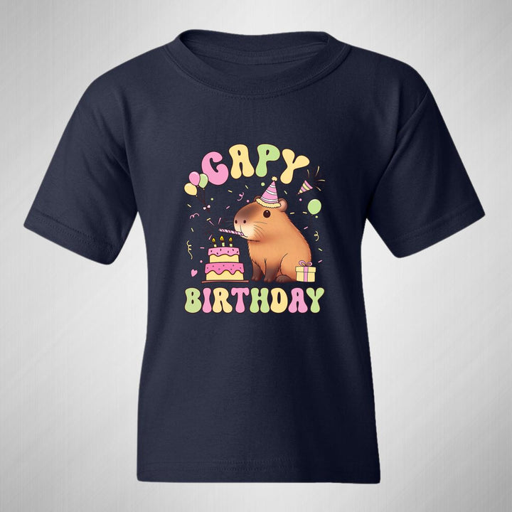 Playera infantil manga corta, cuello redondo para niño o niña nueva, diseño Capibara Carpincho Frases original impreso con tecnología DTG (directo a la prenda) tacto cero, uso casual o deportiva, 100% algodón chifón pre encogido, estructura tubular sin costuras laterales. Colores de camiseta: Negro, Blanco, Azul Marino.
