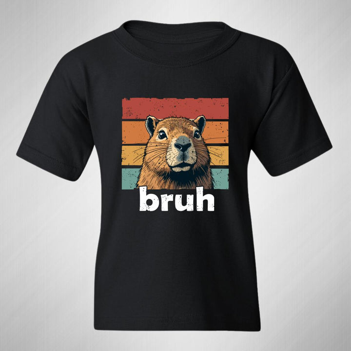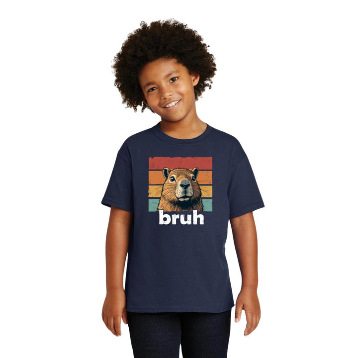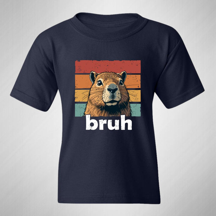 Playera infantil manga corta, cuello redondo para niño o niña nueva, diseño Capibara Carpincho Frases original impreso con tecnología DTG (directo a la prenda) tacto cero, uso casual o deportiva, 100% algodón chifón pre encogido, estructura tubular sin costuras laterales. Colores de camiseta: Negro, Azul Marino.