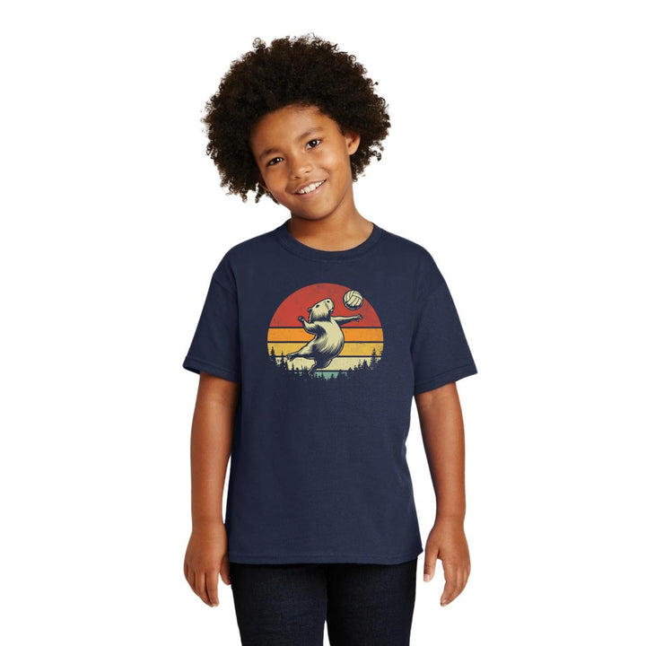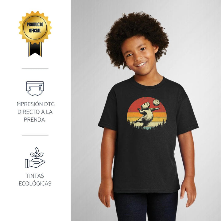 Playera infantil manga corta, cuello redondo para niño o niña nueva, diseño Capibara Carpincho Frases original impreso con tecnología DTG (directo a la prenda) tacto cero, uso casual o deportiva, 100% algodón chifón pre encogido, estructura tubular sin costuras laterales. Colores de camiseta: Negro, Azul Marino.