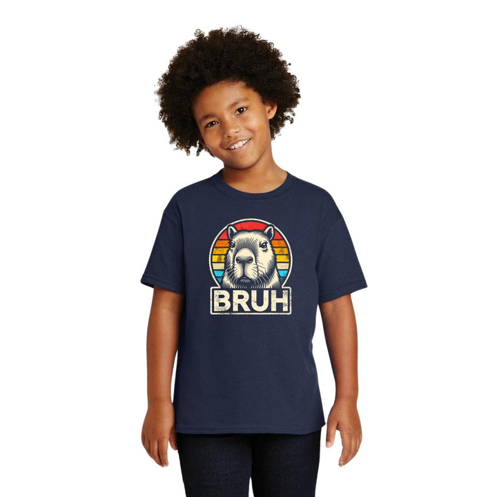 Playera infantil manga corta, cuello redondo para niño o niña nueva, diseño Capibara Carpincho Frases original impreso con tecnología DTG (directo a la prenda) tacto cero, uso casual o deportiva, 100% algodón chifón pre encogido, estructura tubular sin costuras laterales. Colores de camiseta: Negro, Azul Marino.