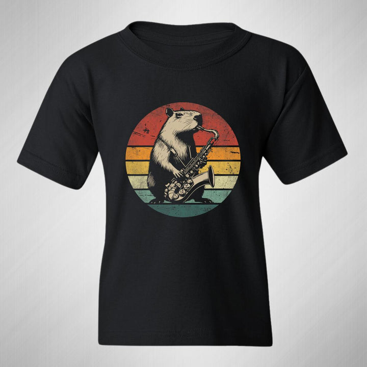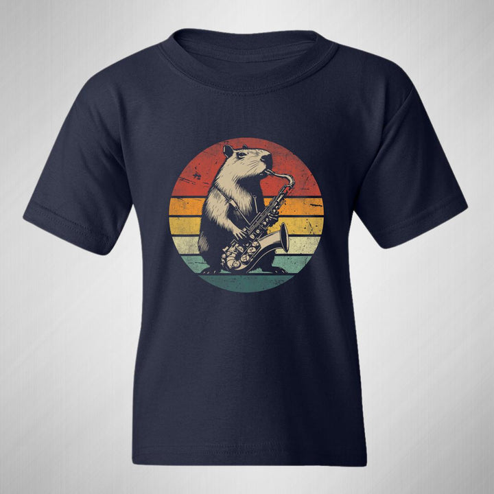 Playera infantil manga corta, cuello redondo para niño o niña nueva, diseño Capibara Carpincho Frases original impreso con tecnología DTG (directo a la prenda) tacto cero, uso casual o deportiva, 100% algodón chifón pre encogido, estructura tubular sin costuras laterales. Colores de camiseta: Negro, Azul Marino.