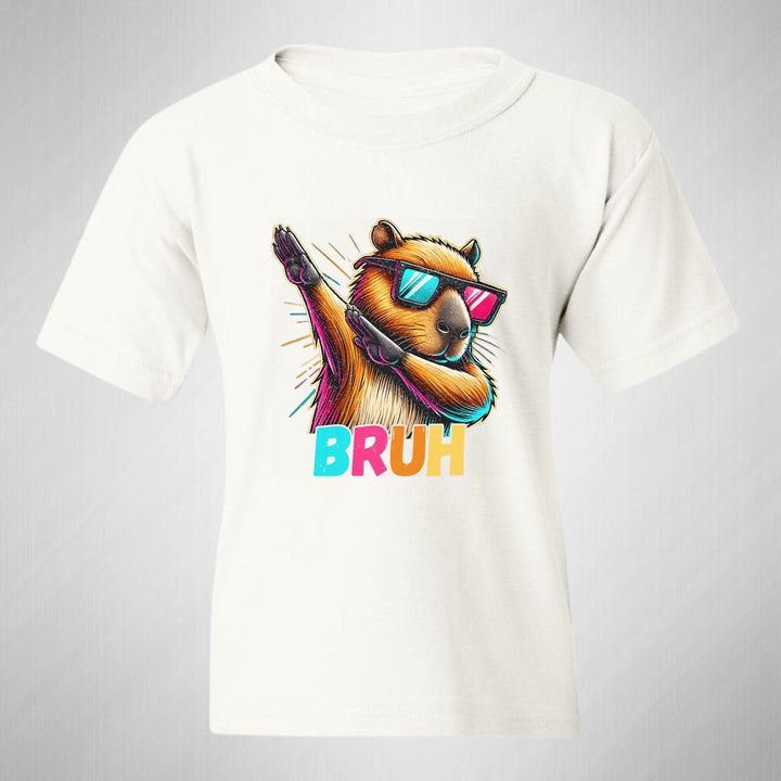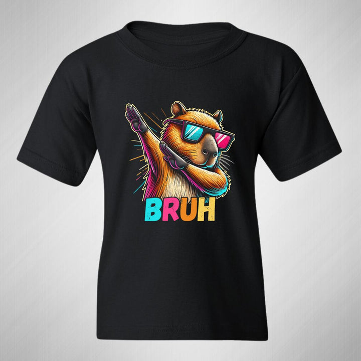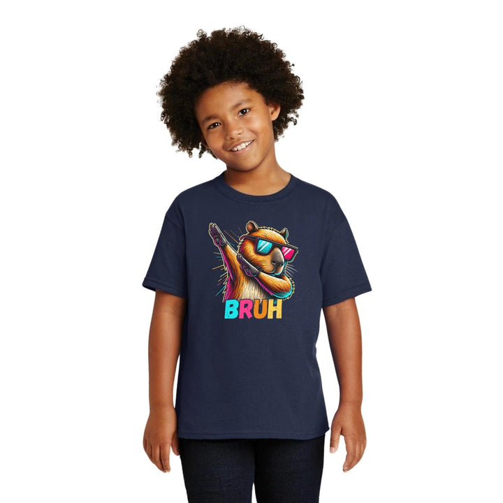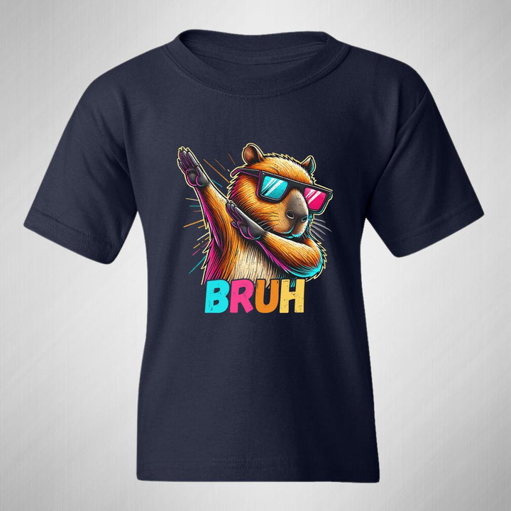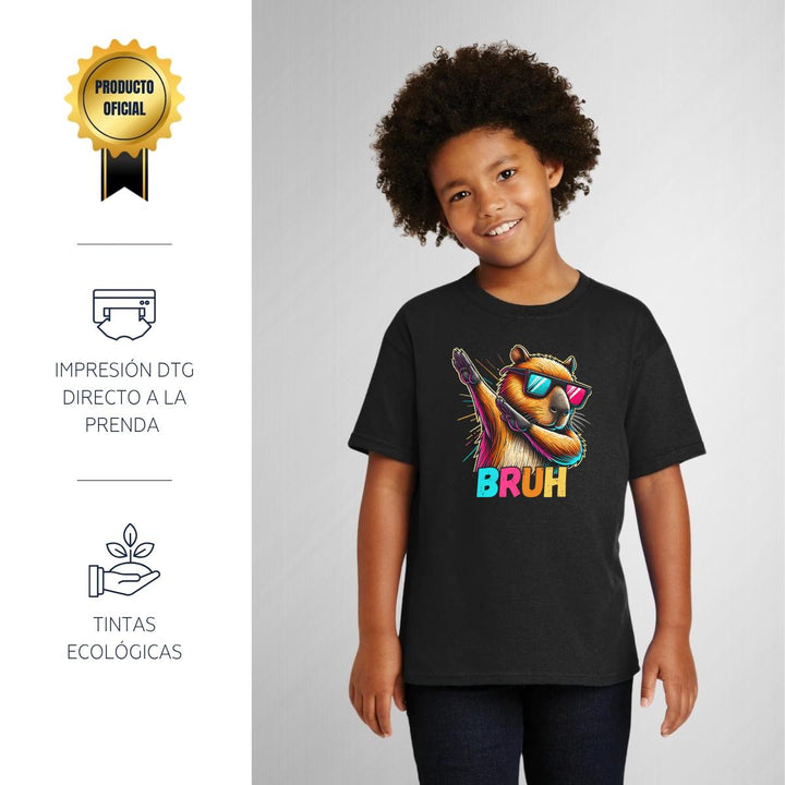 Playera infantil manga corta, cuello redondo para niño o niña nueva, diseño Capibara Carpincho Frases original impreso con tecnología DTG (directo a la prenda) tacto cero, uso casual o deportiva, 100% algodón chifón pre encogido, estructura tubular sin costuras laterales. Colores de camiseta: Negro, Blanco, Azul Marino.