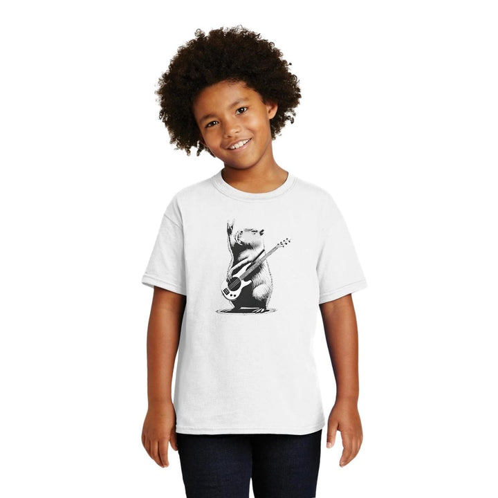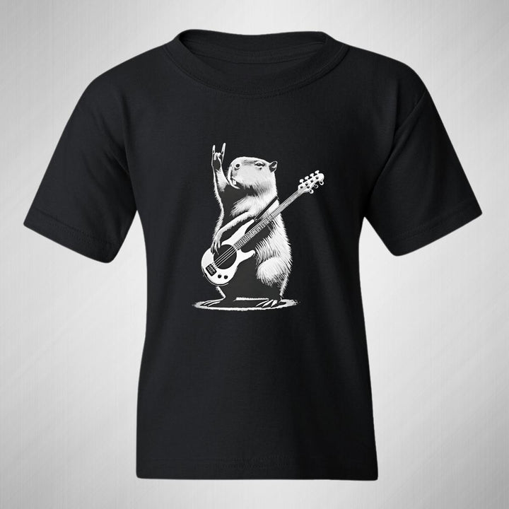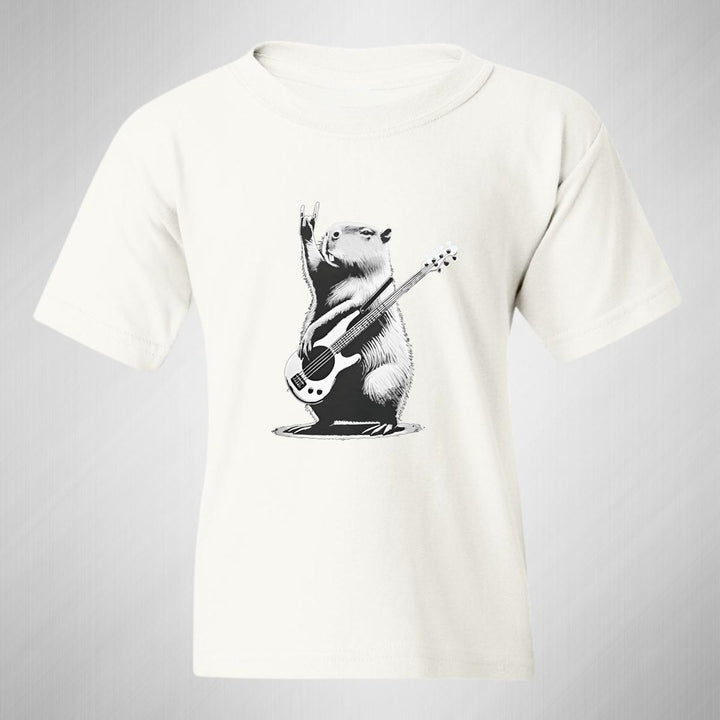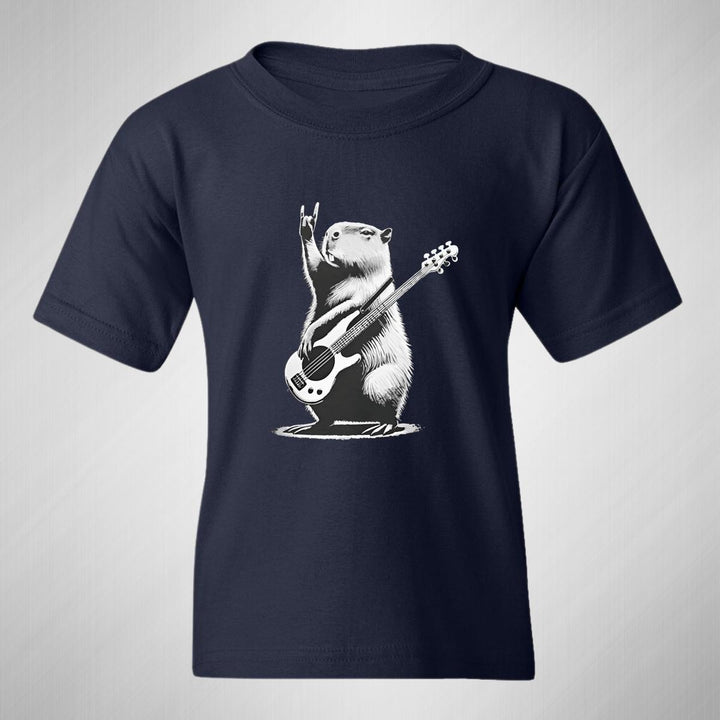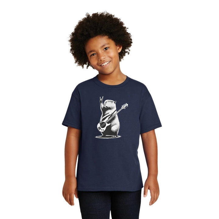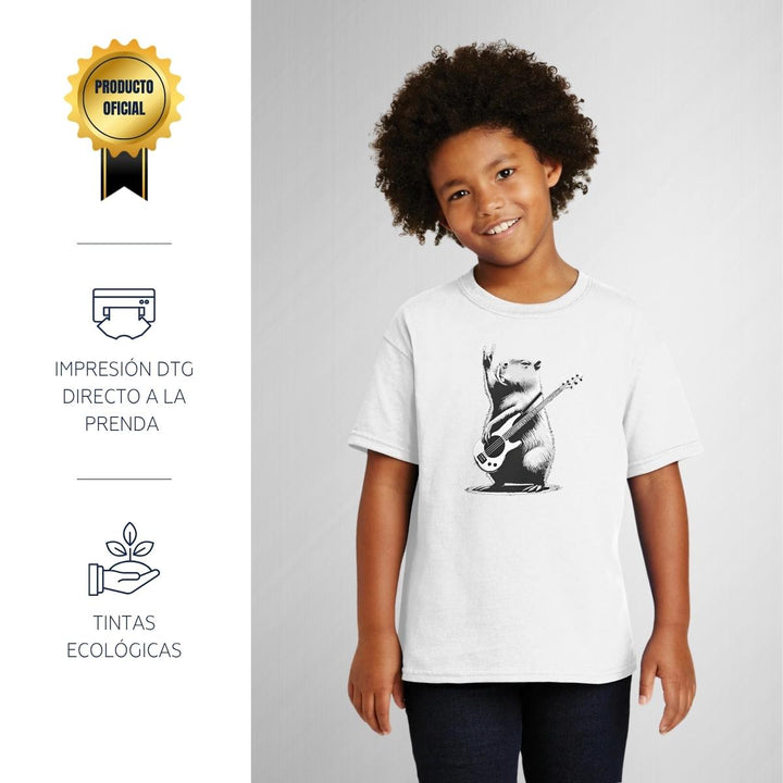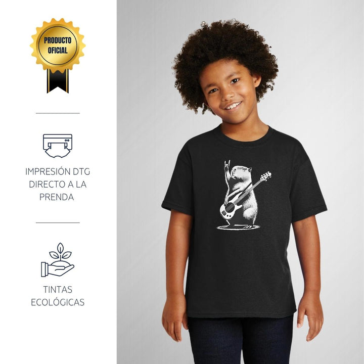 Playera infantil manga corta, cuello redondo para niño o niña nueva, diseño Capibara Carpincho Frases original impreso con tecnología DTG (directo a la prenda) tacto cero, uso casual o deportiva, 100% algodón chifón pre encogido, estructura tubular sin costuras laterales. Colores de camiseta: Negro, Blanco, Azul Marino.