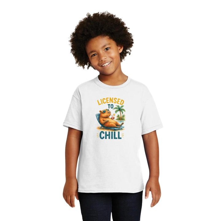 Playera infantil manga corta, cuello redondo para niño o niña nueva, diseño Capibara Carpincho Frases original impreso con tecnología DTG (directo a la prenda) tacto cero, uso casual o deportiva, 100% algodón chifón pre encogido, estructura tubular sin costuras laterales. Colores de camiseta: Negro, Blanco, Azul Marino.