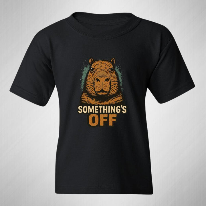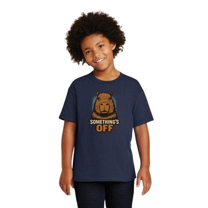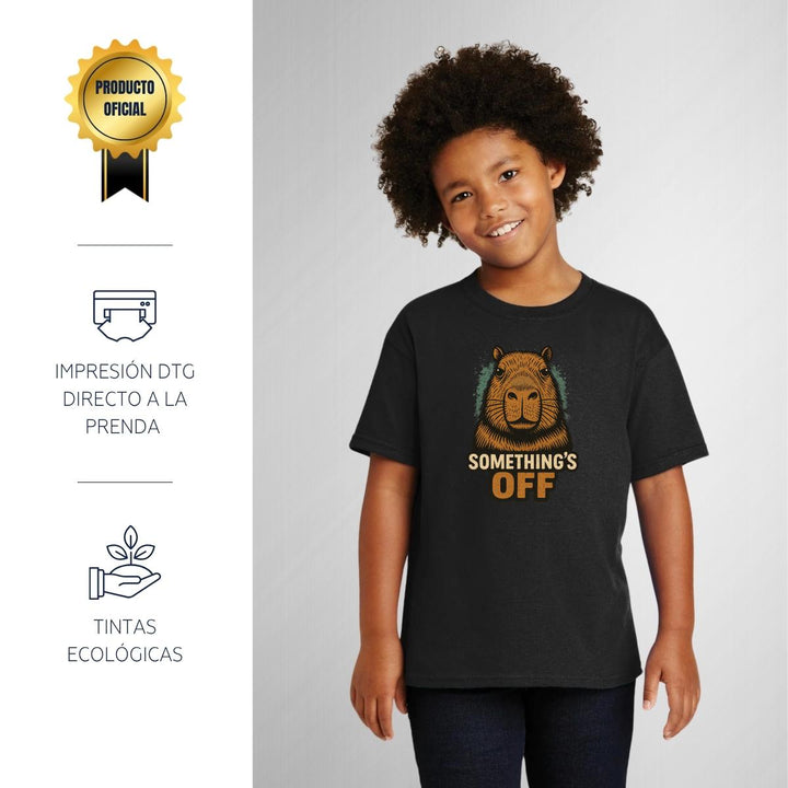 Playera infantil manga corta, cuello redondo para niño o niña nueva, diseño Capibara Carpincho Frases original impreso con tecnología DTG (directo a la prenda) tacto cero, uso casual o deportiva, 100% algodón chifón pre encogido, estructura tubular sin costuras laterales. Colores de camiseta: Negro, Blanco, Azul Marino.