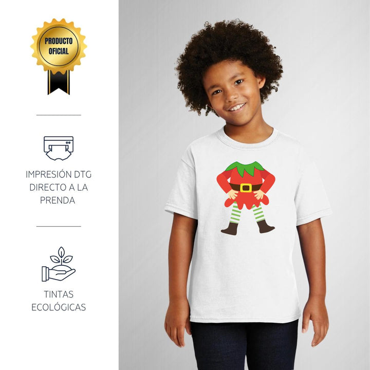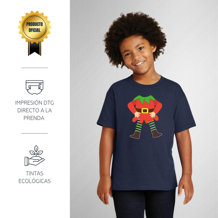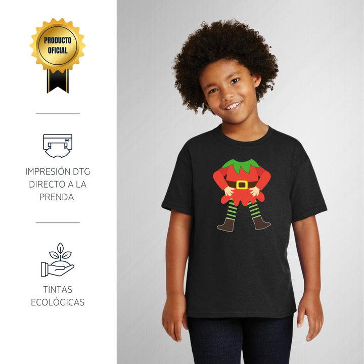 Playera infantil manga corta, cuello redondo para niño o niña nueva, diseño Duende original impreso con tecnología DTG (directo a la prenda) tacto cero, uso casual o deportiva, 100% algodón chifón pre encogido, estructura tubular sin costuras laterales. Colores de camiseta: Negro, Blanco, Azul Marino .