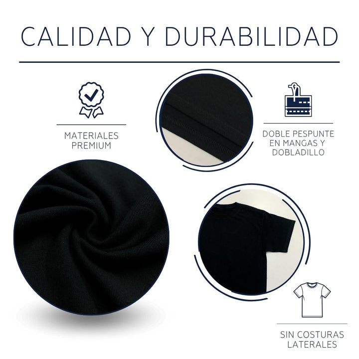 - COMODIDAD Y DURABILIDAD: Su cuello redondo de punto, de ancho clásico y sin costuras brinda comodidad a la prenda. La playera se encuentra reforzada tanto en cuello como en hombros haciéndola más resistente. Posee una estructura tubular sin costuras laterales que permite un excelente ajuste y evita su deformidad, proporcionando comodidad duradera durante todo el día.