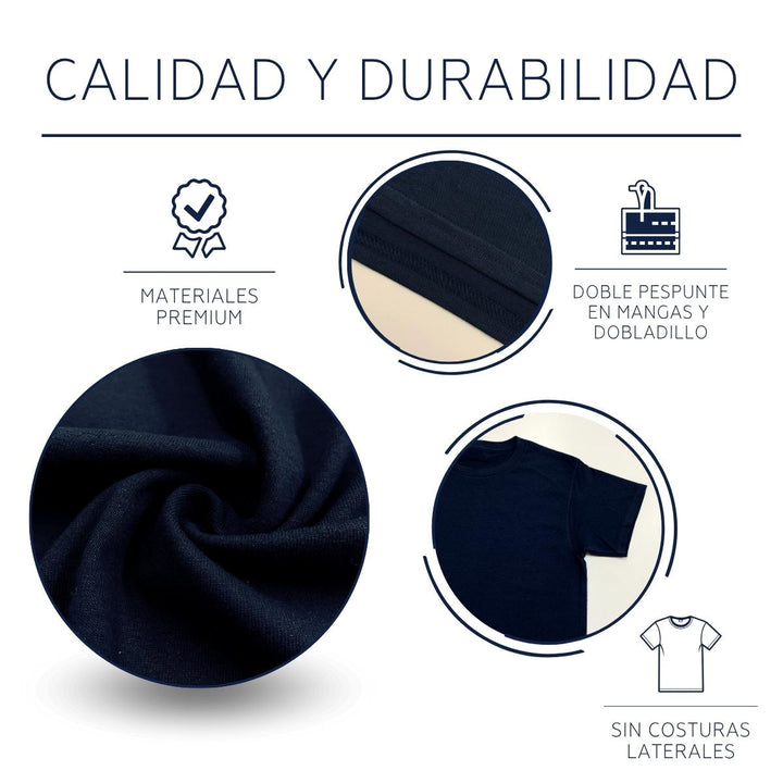 - COMODIDAD Y DURABILIDAD: Su cuello redondo de punto, de ancho clásico y sin costuras brinda comodidad a la prenda. La playera se encuentra reforzada tanto en cuello como en hombros haciéndola más resistente. Posee una estructura tubular sin costuras laterales que permite un excelente ajuste y evita su deformidad, proporcionando comodidad duradera durante todo el día.