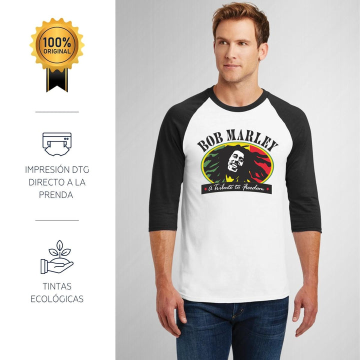 Playera Raglán Manga 3/4 Hombre Rock Bob Marley A tribute 000883